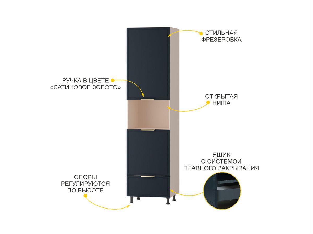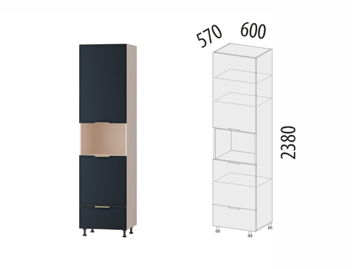 • Пенал позволяет устанавливать компактную бытовую технику (СВЧ-печь, в том числе и встраиваемую, кофеварку и др.) в открытую нишу. Внутренние габариты открытой ниши составляют: ширина — 566 мм, глубина — 522 мм, высота — 396 мм.