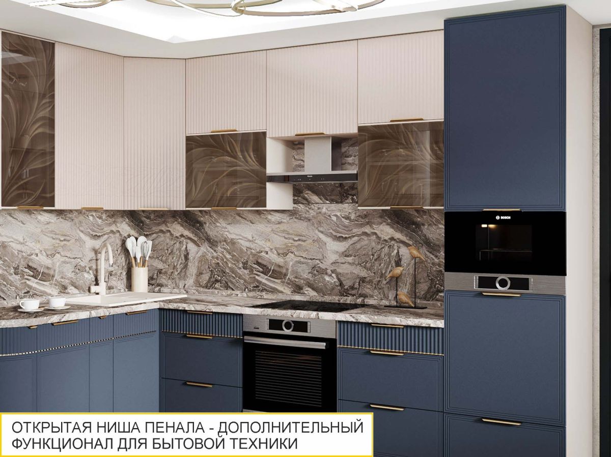 Кухня «Флоренция» - это образец изящности и современной роскоши. Она идеально подходит для тех, кто ценит не только функциональность, но и особую изысканность и шик. Безупречный образ, основанный на уникальном дизайне, инновационных технологиях и исключительном мастерстве исполнения, делает кухню «Флоренция» магнитом для притяжения внимания. Гармонично подобранные цвета создают ощущение уюта и спокойствия, а акцентные ручки и оригинальная металлическая пластина в цвете «сатиновое золото» придают мебели роскошный вид. Модная фрезеровка «рейки» на фасадах в сочетании с текстурной поверхностью и тройной рамкой создают неповторимый дизайн коллекции.