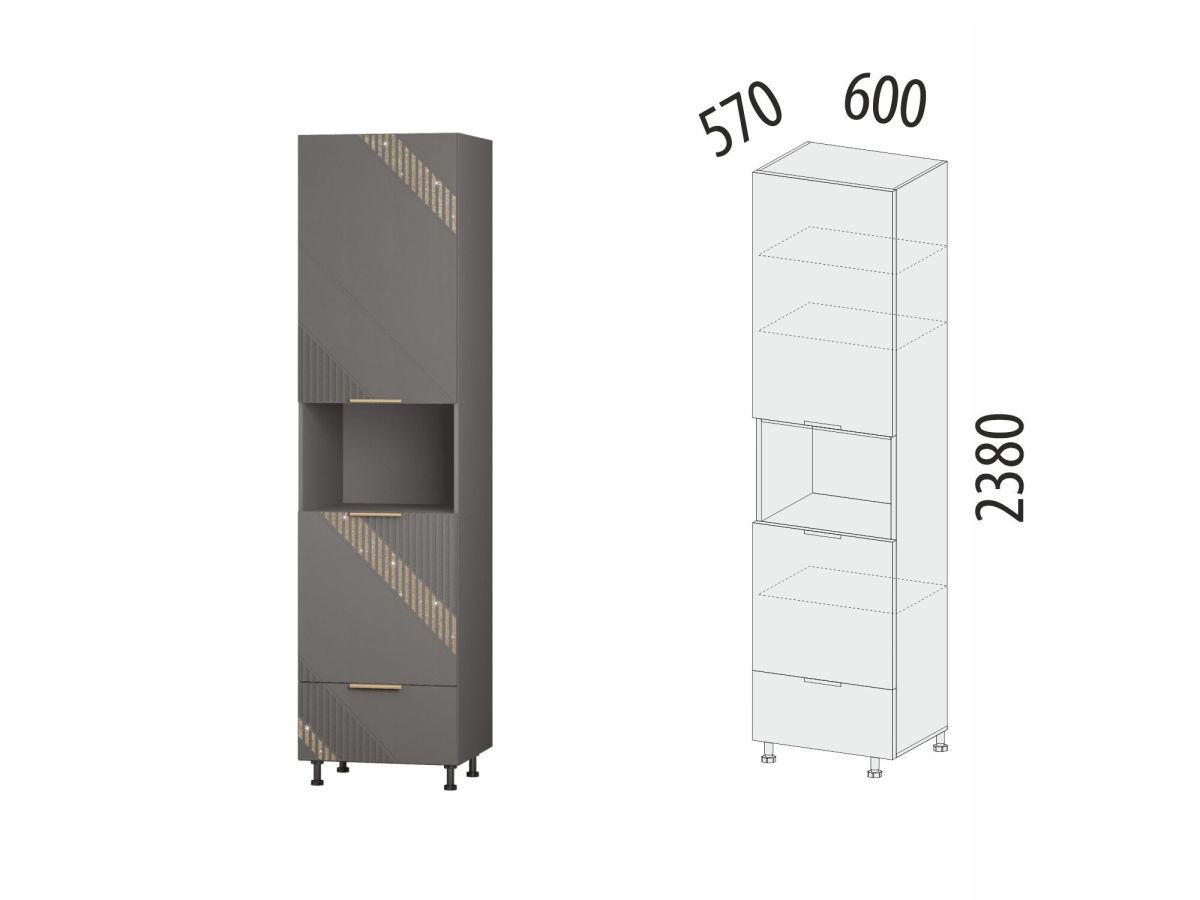 - Пенал позволяет устанавливать компактную бытовую технику (СВЧ-печь, в том числе и встраиваемую, кофеварку и др.) в открытую нишу. Внутренние габариты открытой ниши составляют: ширина — 566 мм, глубина — 522 мм, высота — 396 мм.