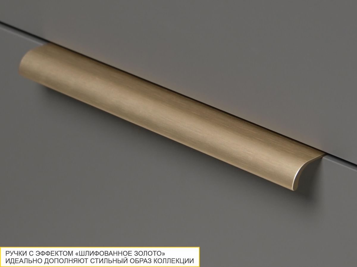 - Дизайнерские ручки с эффектом «шлифованное золото» отличаются эргономичной формой, идеально дополняют стильный образ коллекции.