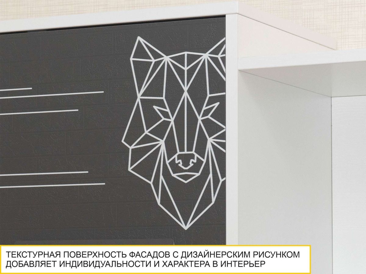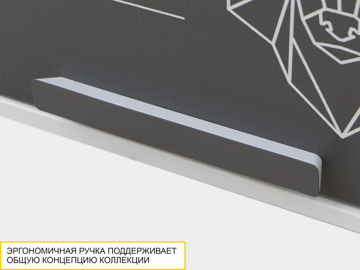 - Фасад в цвете «Графит» декорирован объемным тиснением. Рельефная текстура придает дизайну мебели выразительности, создает глубину и приятные тактильные ощущения.