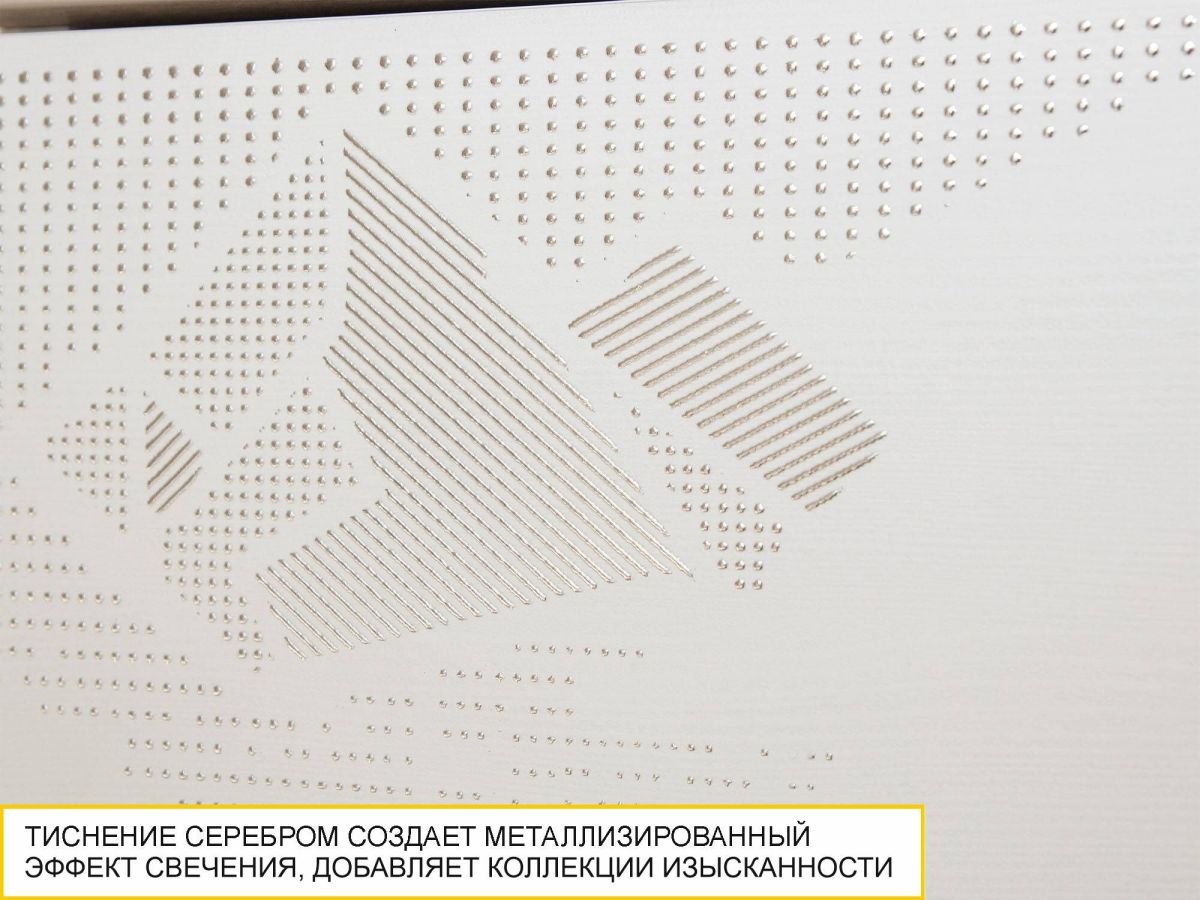 • Тиснение серебром создает металлизированный эффект свечения, придает изысканность и оригинальность коллекции.