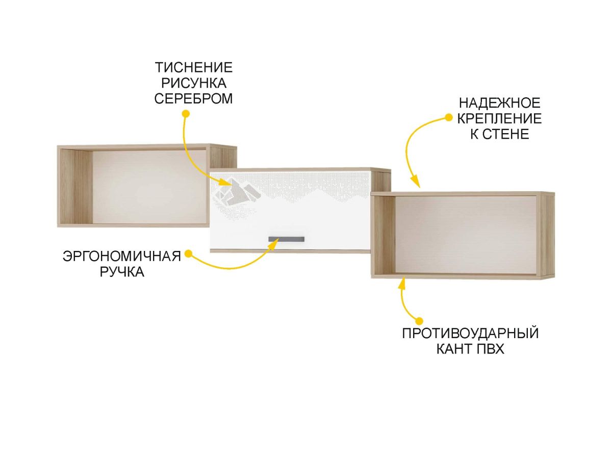 • Полка произведена из ЛДСП повышенной плотности. Материал устойчив к механическим и термическим воздействиям. ЛДСП выдерживает min 300 циклов на истирание, что почти в 5 раз больше, чем требуется по ГОСТу (min 65).