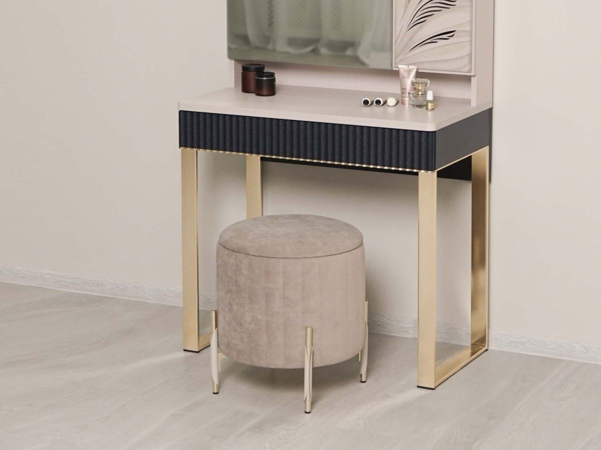 - Стильная отстрочка пуфа идеально дополняет рисунок фрезеровки на фасадах.