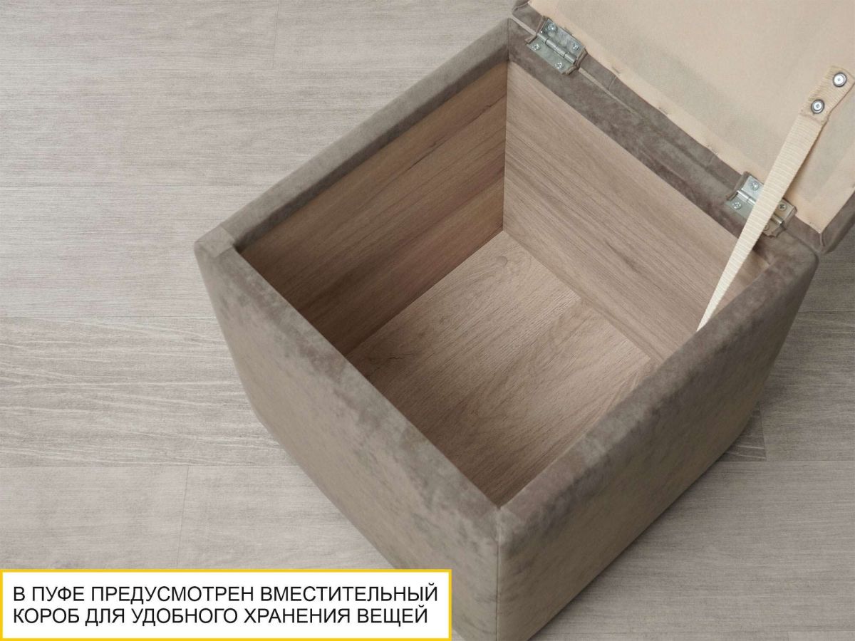 • Внутри пуфа находится вместительный короб для удобного хранения, что делает модель более функциональной.
