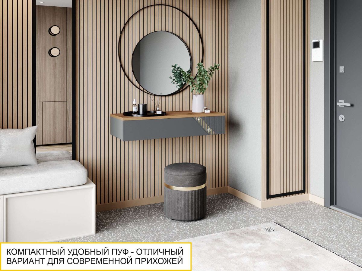 - Стильная отстрочка пуфа идеально дополняет рисунок фрезеровки на фасадах. В сочетании с декоративным металлизированным кантом с эффектом шлифованного золота она придает изделию изысканный внешний вид.
