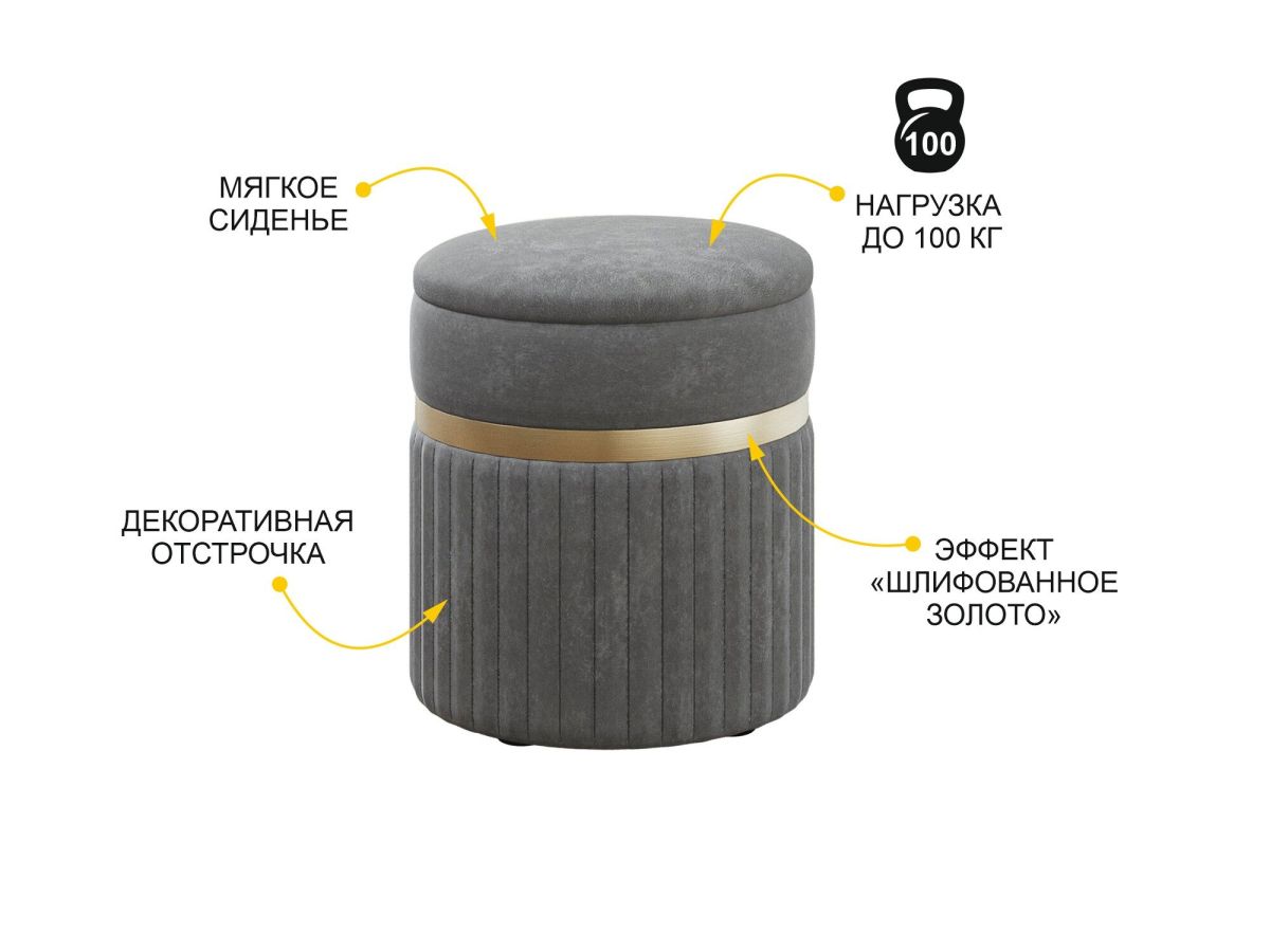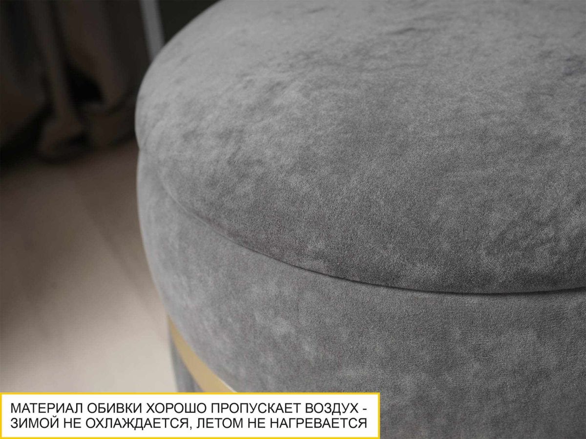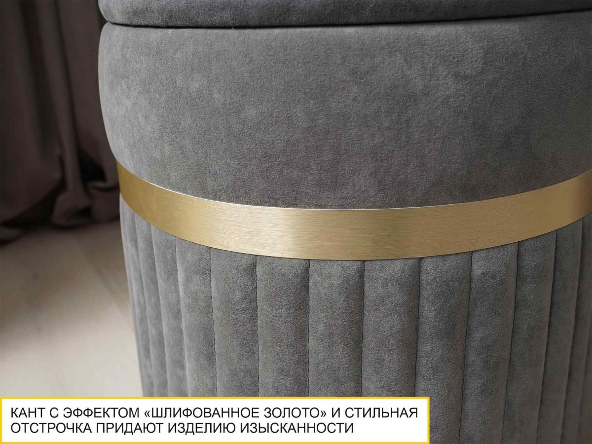 - Металлизированный декоративный кант пуфа имеет качественный незаметный шов - изделие выглядит аккуратно со всех сторон.