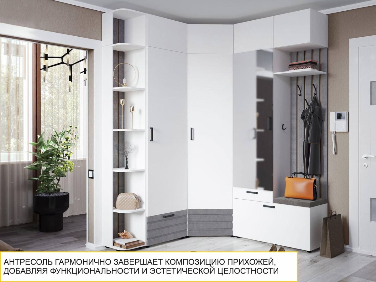Шкаф-антресоль – это не только дополнительное место хранения, но и выразительное дизайнерское решение. Антресоль гармонично завершает композицию прихожей, добавляя функциональности и эстетической завершенности. Исчезает ощущение визуального шума и пустоты над шкафами.