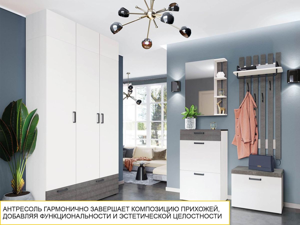 Шкаф-антресоль – это не только дополнительное место хранения, но и выразительное дизайнерское решение. Антресоль гармонично завершает композицию прихожей, добавляя функциональности и эстетической завершенности. Исчезает ощущение визуального шума и пустоты над шкафами.