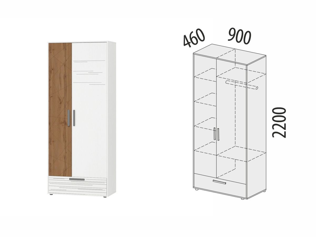 Шкаф для одежды с полками и штангой Аляска 503.01