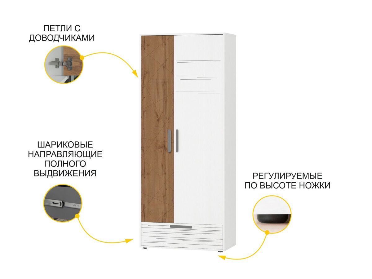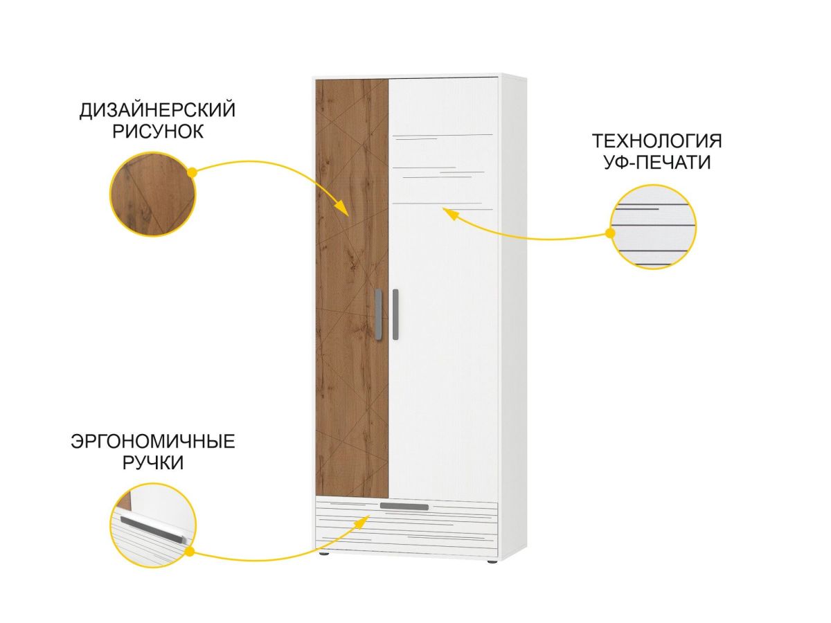 Шкаф «Аляска 503.01» является частью модульной программы «Аляска 503». Коллекция подростковой «Аляска 503» - это современное и функциональное пространство для жизни и учебы. Сочетание белоснежных фасадов с теплым оттенком натурального дерева создает стильный образ коллекции, а универсальный дизайн отлично подойдет как юношам и девушкам, так и детям дошкольного возраста.