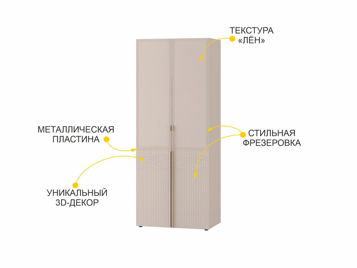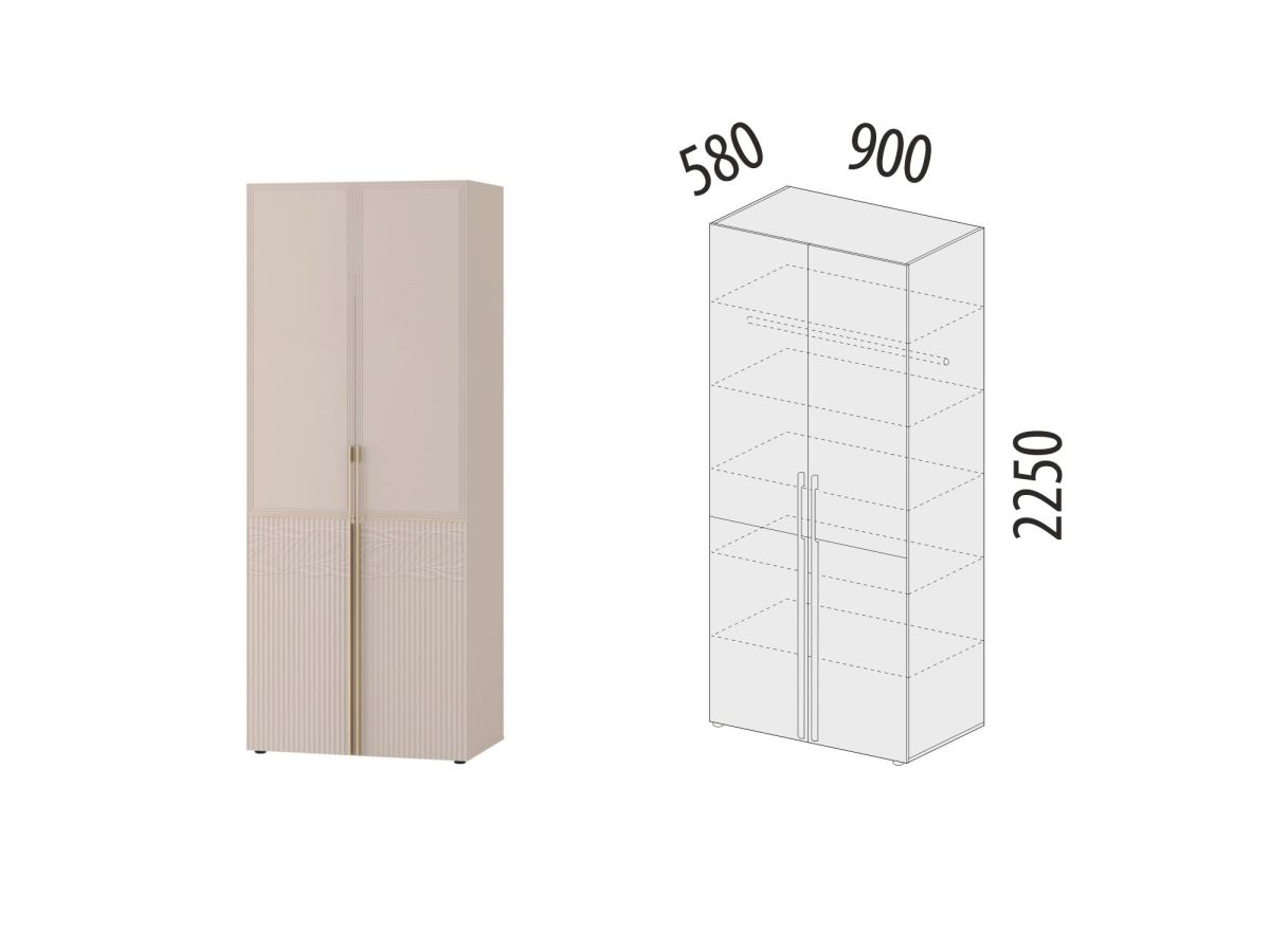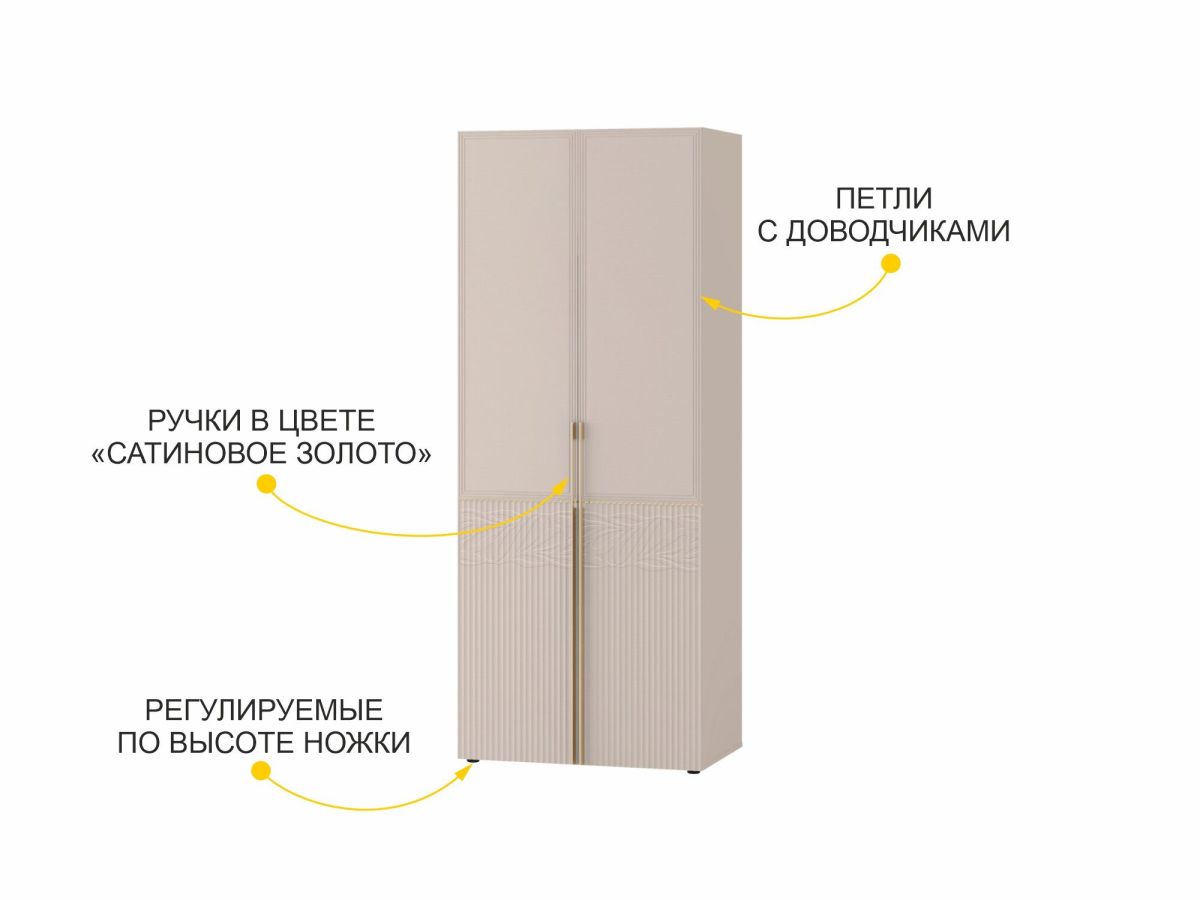Двухдверный шкаф «Флоренция 904.43» является частью модульной программы «Флоренция». Спальня «Флоренция» – это образец изящности и современной роскоши. Нежный цвет «Кашемир» создает светлую и теплую основу в интерьере, которая наполняет пространство спокойствием и гармонией. Оригинальные элементы в цвете «сатиновое золото», элегантная фрезеровка и изящный дизайнерский рисунок подчеркивают утонченный дизайн коллекции.