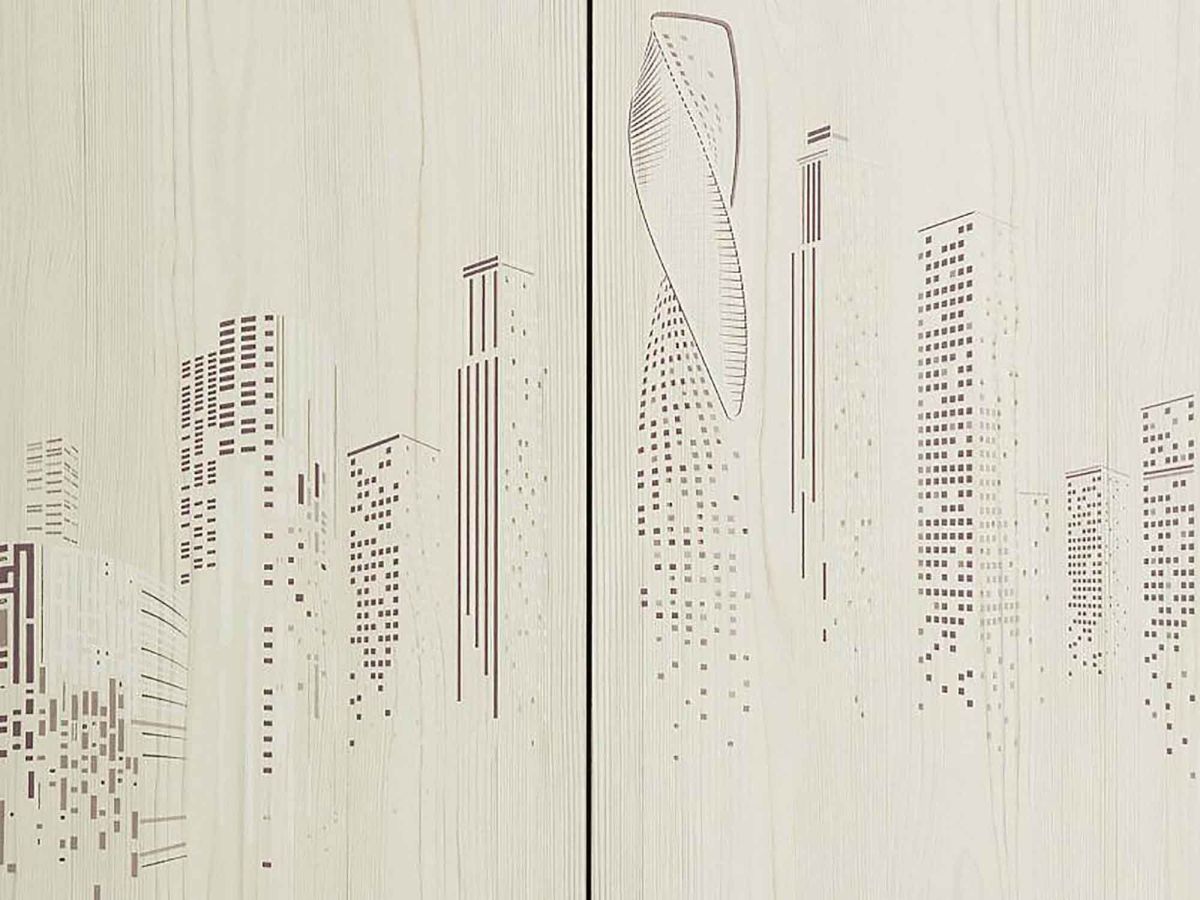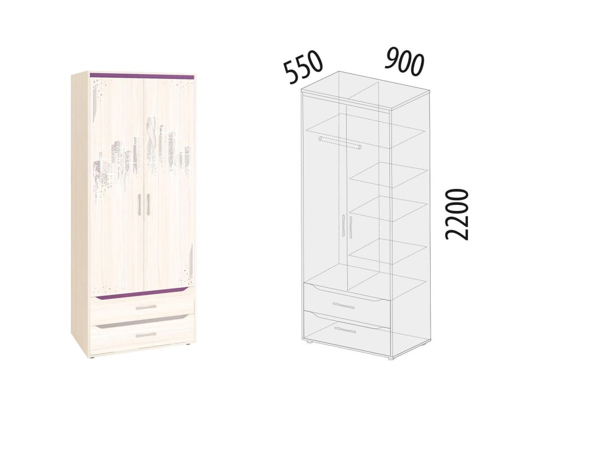 Шкаф для одежды «Мегаполис 55.01.1» является частью модульного набора серии «Мегаполис». В левой части шкафа установлена штанга для хранения одежды на плечиках, в правой части расположены полки. В нижней части шкафа установлены два выдвижных полновыкатных ящика. Шариковые направляющие обеспечивают плавный бесшумный ход и длительный срок эксплуатации изделия. Плавное закрывание дверок обеспечивают петли с доводчиками. Ножки модуля регулируются по высоте, что позволяет при установке шкафа компенсировать возможные неровности пола. Шкаф можно использовать не только в сочетании с другими модулями подростковой, но и как отдельный предмет мебели.