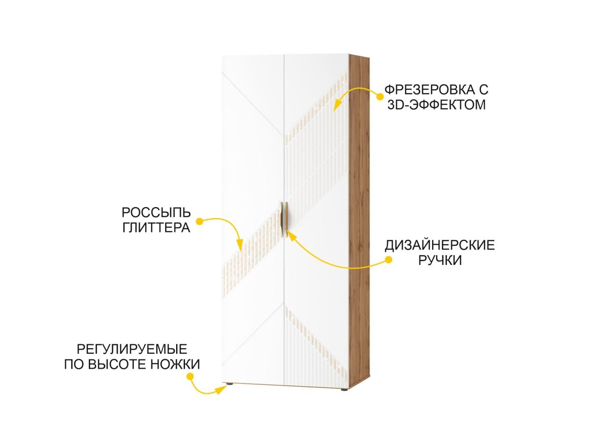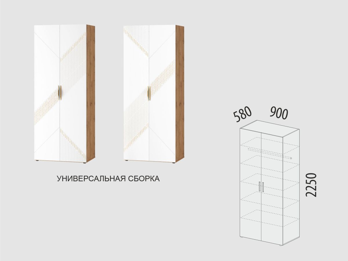 - Модуль отличается практичностью, функциональностью, а также универсальностью сборки. На свое усмотрение Вы можете поменять дверцы местами — при этом меняется и внешний рисунок фасада. В зависимости от сборки геометрия декора приобретает разное направление и визуально преображает композицию шкафа.
