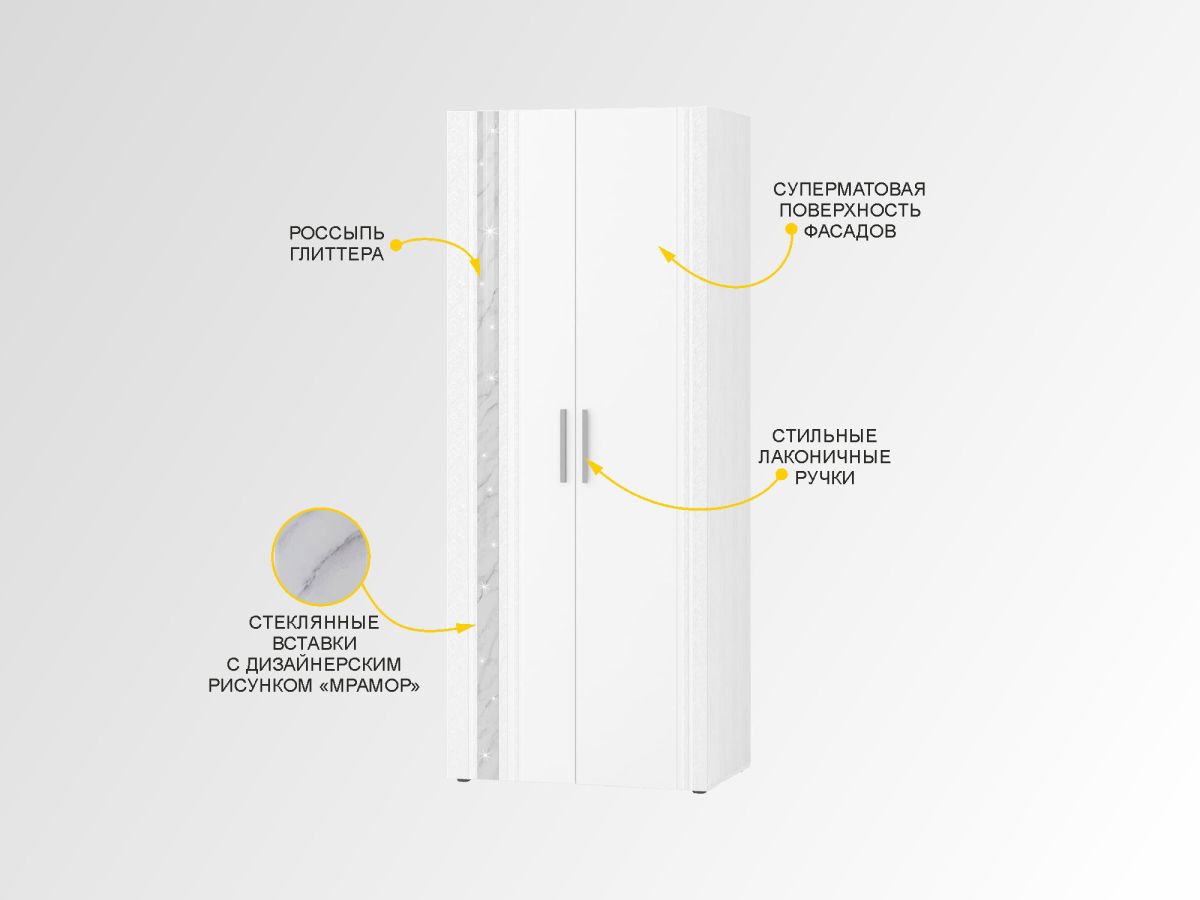 Шкаф двухдверный универсальный «Николь 901.43» является частью модульной программы «Николь». Сочетание белоснежных матовых фасадов с нежно-серым мерцающим декором «мрамор» - визитная карточка этой коллекции. Конструктив и дизайн модели продуман до мелочей.