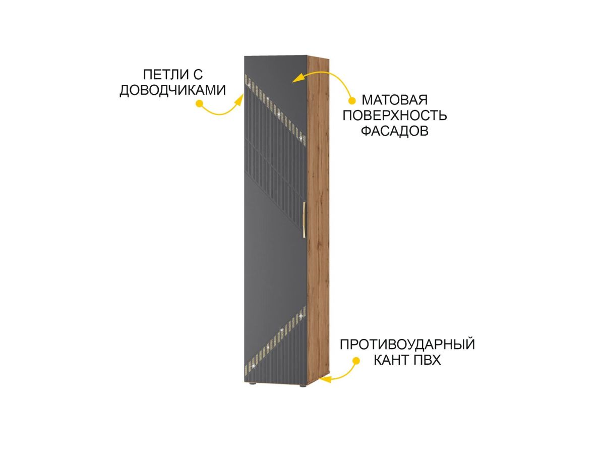 Шкаф-пенал «Монако 902.10» является частью модульной программы «Монако 902». Коллекция «Монако 902» - это образец элегантного стиля и утонченного вкуса. Сочетание матовой графитовой поверхности фасадов с благородной древесной текстурой создает особую атмосферу гармонии и комфорта.