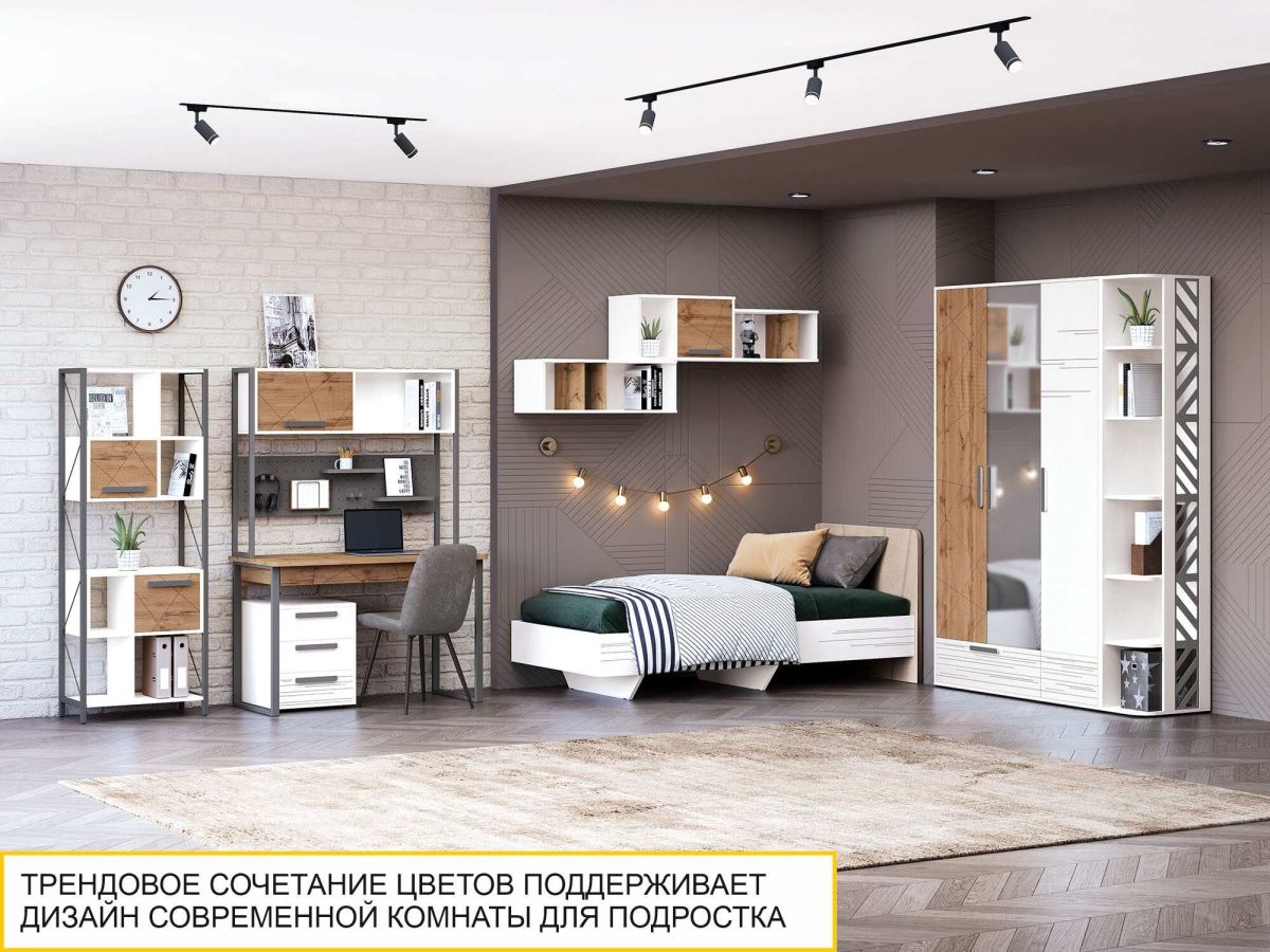 Шкаф «Аляска 503.28» является частью модульной программы «Аляска 503». Коллекция подростковой «Аляска 503» - это современное и функциональное пространство для жизни и учебы. Сочетание белоснежных фасадов с теплым оттенком натурального дерева создает стильный образ коллекции, а универсальный дизайн отлично подойдет как юношам и девушкам, так и детям дошкольного возраста.