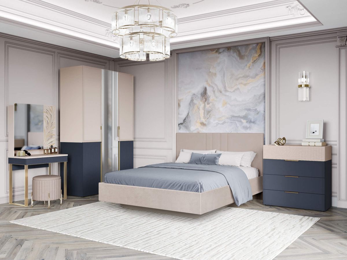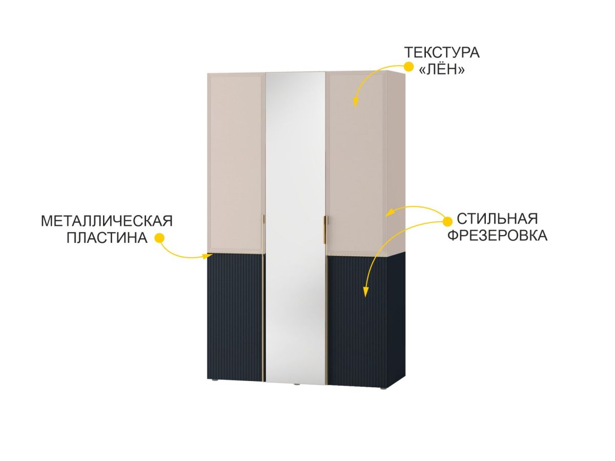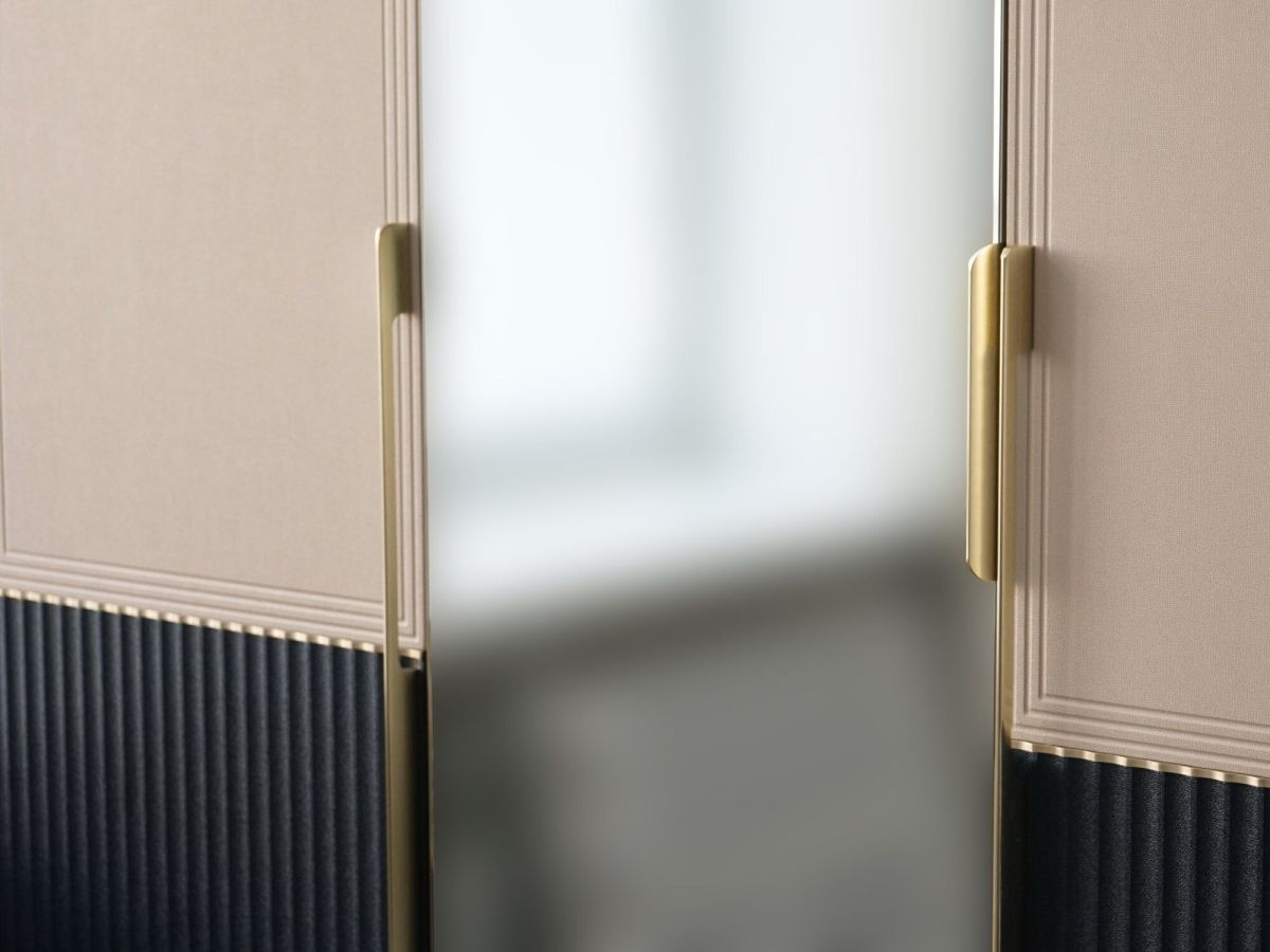 Трехдверный шкаф с зеркалом «Флоренция 905.12» является частью модульной программы «Флоренция». Спальня «Флоренция» – это образец изящности и современной роскоши. Цвета «Кашемир» и «Индиго» образуют стильный и теплый дуэт: светлый тон наполняет пространство мягкостью, а насыщенный темно-синий придает интерьеру глубину и изысканность. Оригинальные элементы в цвете «сатиновое золото» и элегантная фрезеровка подчеркивают утонченный дизайн коллекции.