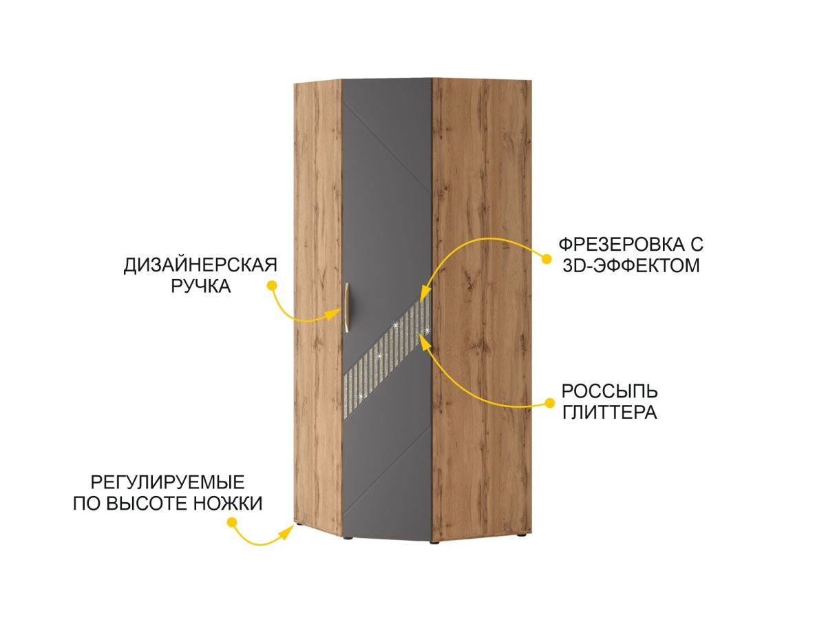 Шкаф угловой «Монако 902.08.1» является частью модульной программы «Монако 902». Коллекция «Монако 902» - это образец элегантного стиля и утонченного вкуса. Сочетание матовой графитовой поверхности фасадов с благородной древесной текстурой создает особую атмосферу гармонии и комфорта. Рекомендация наших дизайнеров: если хотите сэкономить пространство в комнате, используйте для хранения одежды угловые шкафы.