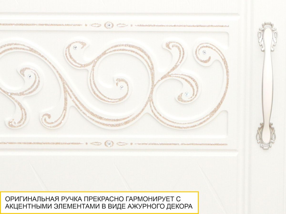 - Дверца шкафа декорирована ажурным декоративным элементом, дополненным глиттерным рисунком и кристаллами премиум-класса.