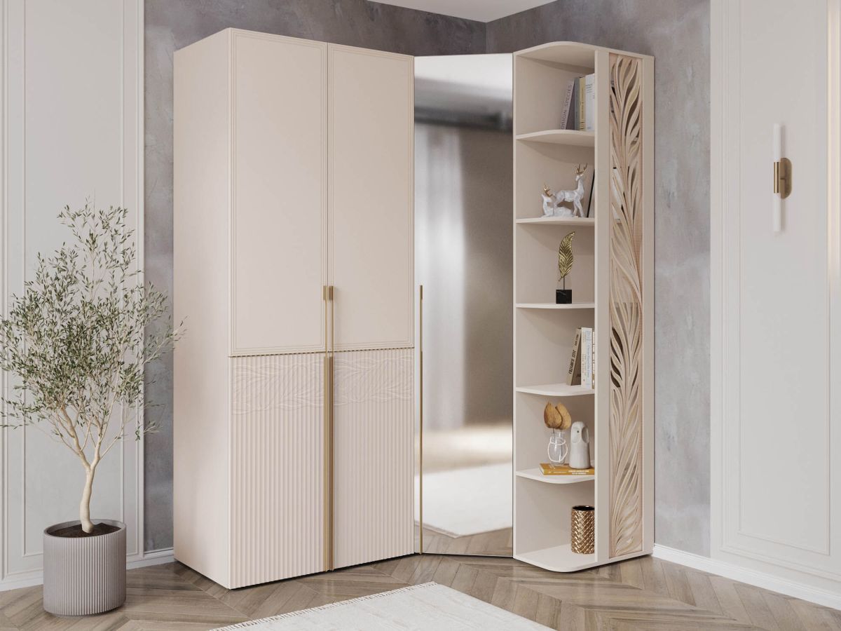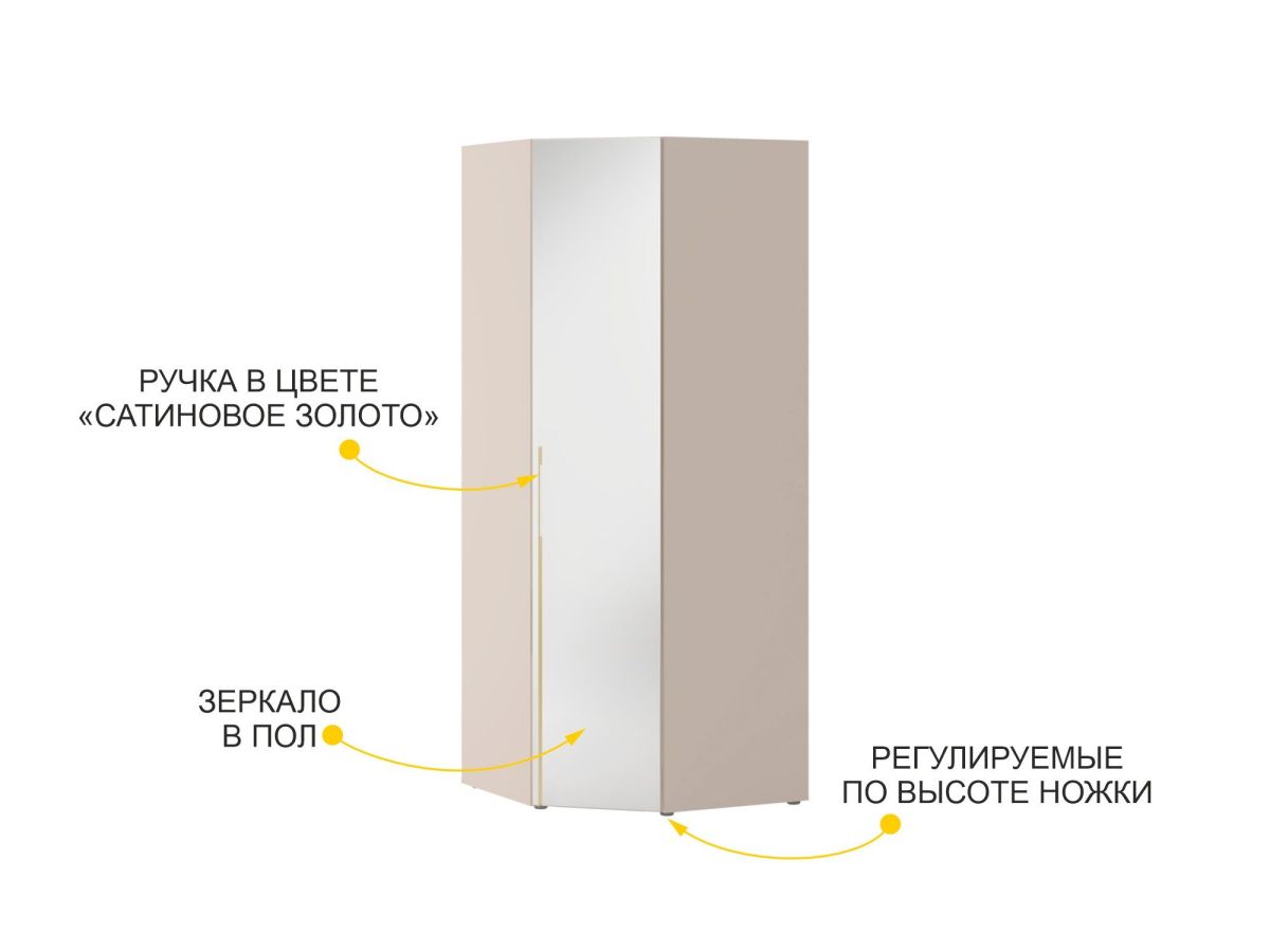 Шкаф угловой с зеркалом «Флоренция 904.09» является частью модульной программы «Флоренция». Спальня «Флоренция» – это образец изящности и современной роскоши. Нежный цвет «Кашемир» создает светлую и теплую основу в интерьере, которая наполняет пространство спокойствием и гармонией.