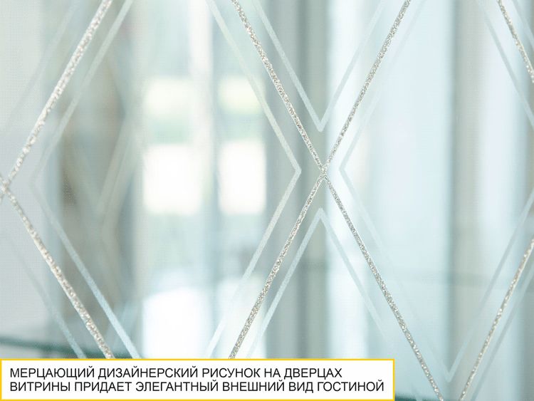 - Стеклянные дверцы модуля декорированы мерцающим дизайнерским рисунком с кристаллами премиум-класса, что придает изделию элегантный внешний вид. Покрытие декора устойчиво к истиранию и не выцветает со временем.