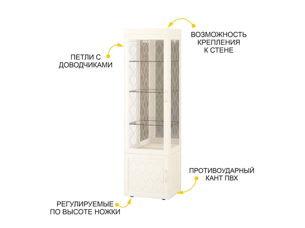 Сервант однодверный «Тиффани 600.08» является изюминкой модульной программы «Тиффани». Нежные светлые фасады и изысканный ажурный декор с кристаллами премиум-класса — отличительная черта данной коллекции.