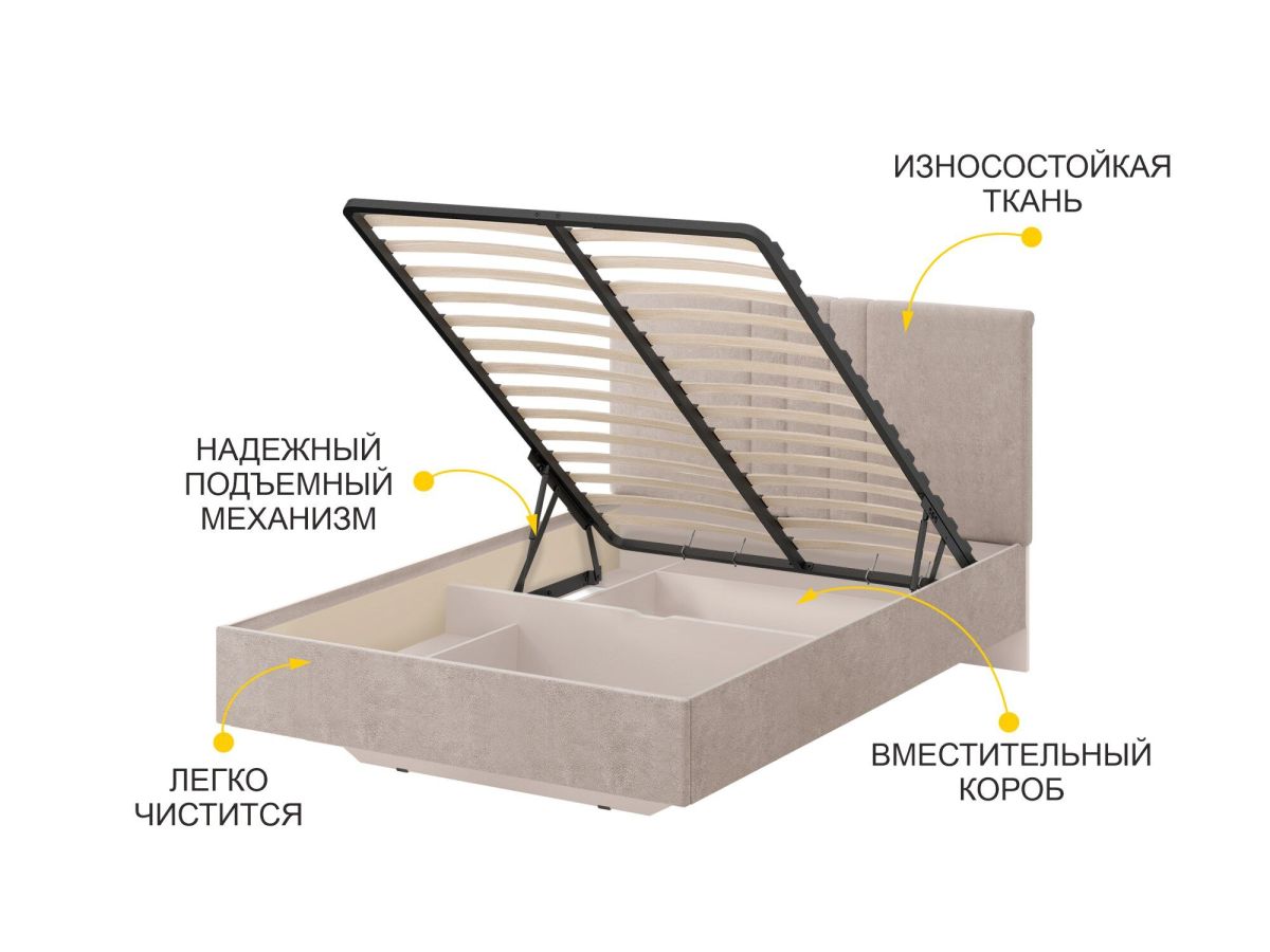 - Кровать обтянута прочной, износостойкой и приятной на ощупь тканью. Декоративная отстрочка добавляет выразительности и формирует элегантный рельеф. Актуальный цвет «Даллас Кашемир» сочетает в себе теплоту и гармонию.