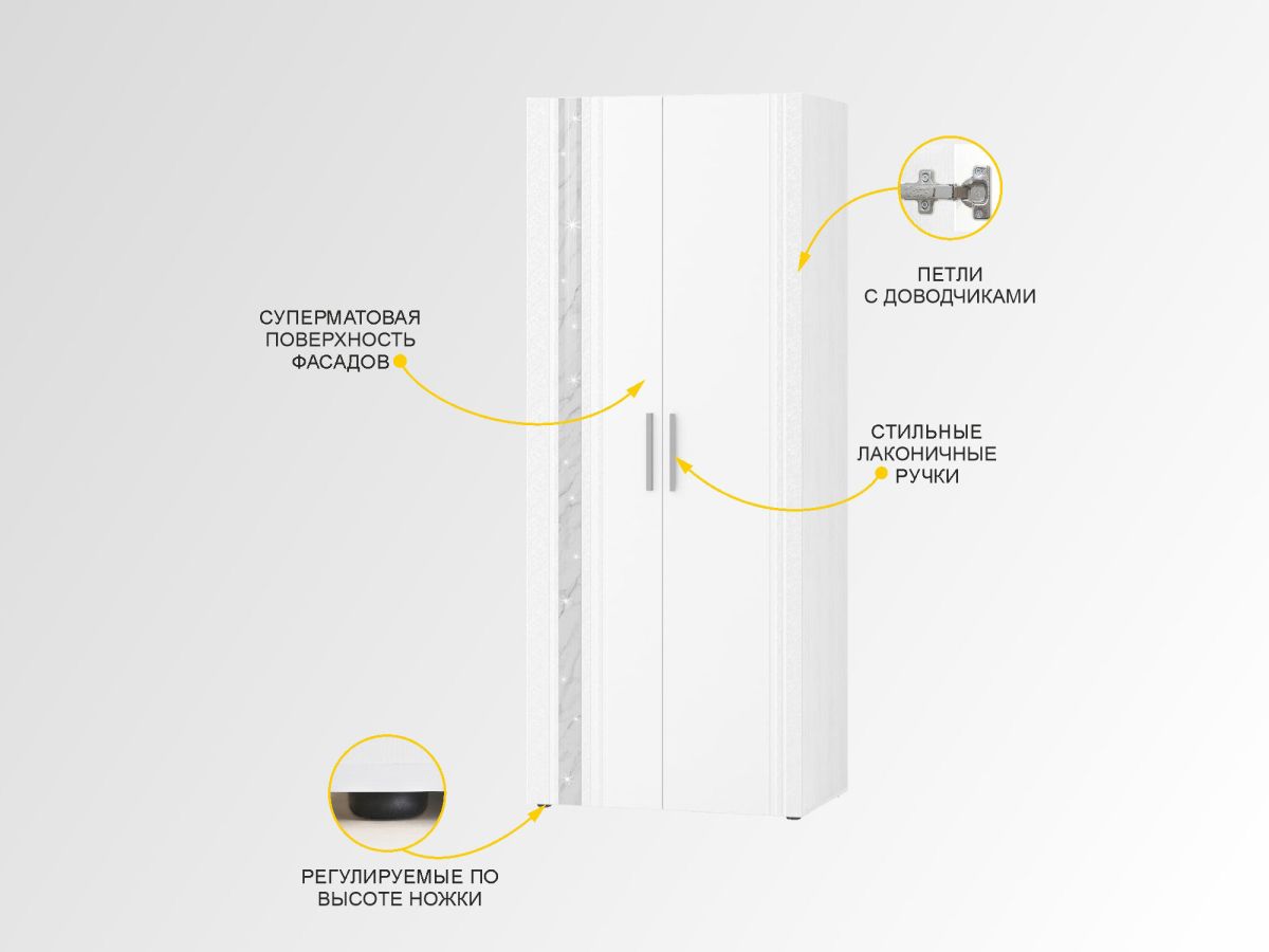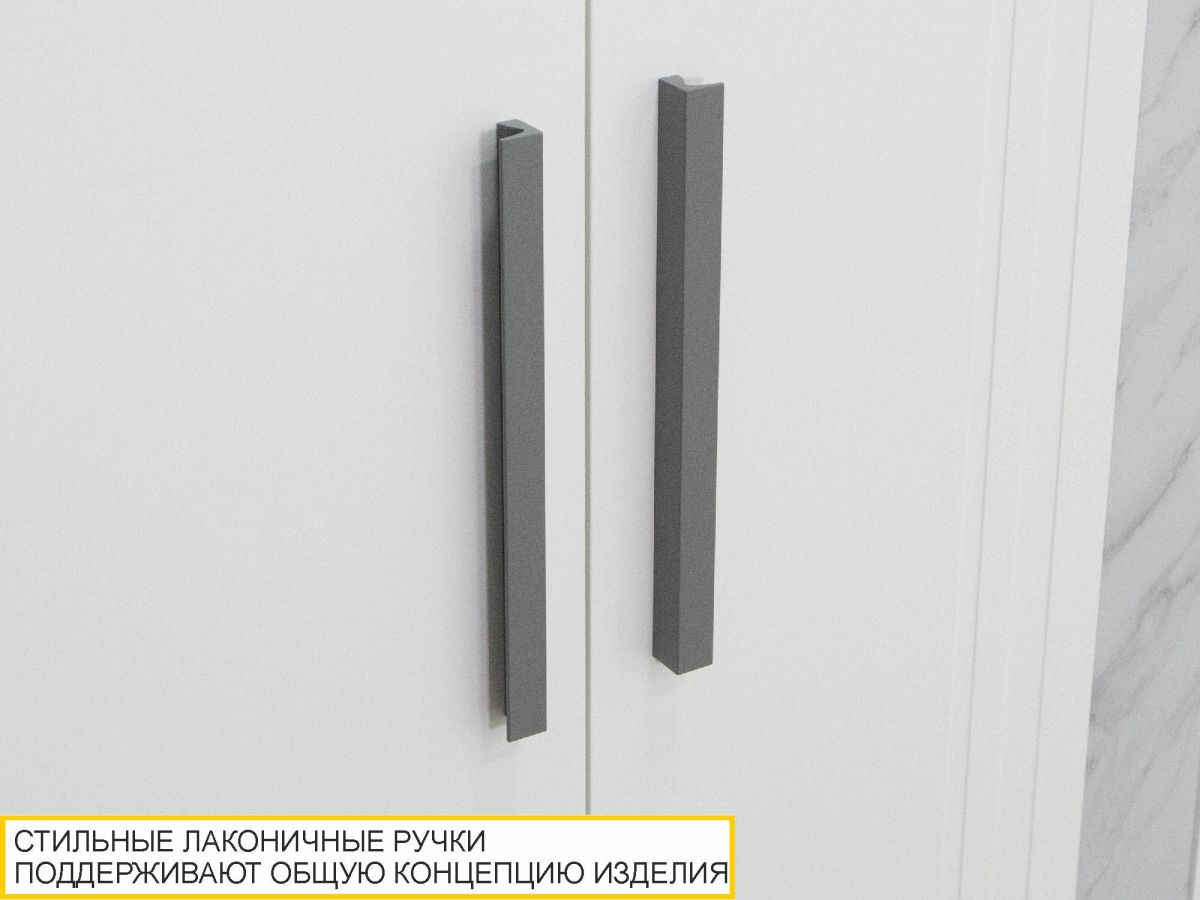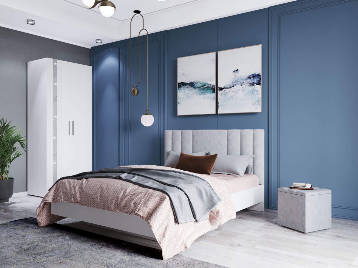 Спальня «Николь» – это сочетание безупречного дизайна и неповторимой атмосферы комфорта. Белоснежный цвет и матовую поверхность фасадов дополняют лаконичный 3D-рисунок и фрезеровка. Стеклянные вставки с мраморным рисунком и деликатным мерцающим блеском привлекают внимание и подчеркивают уникальность коллекции. Изголовье кровати, выполненное из софт-велюра нежно-серого цвета, подарит интерьеру Вашей спальни ощущение гармонии и спокойствия.