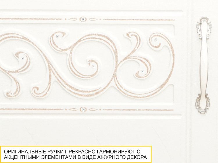 - Оригинальные ручки прекрасно гармонируют с акцентными элементами в виде ажурного декора.