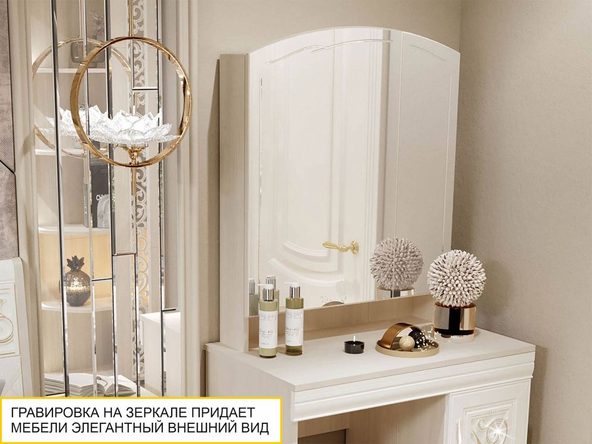 - Гравировка на зеркалах придает мебели элегантный внешний вид.