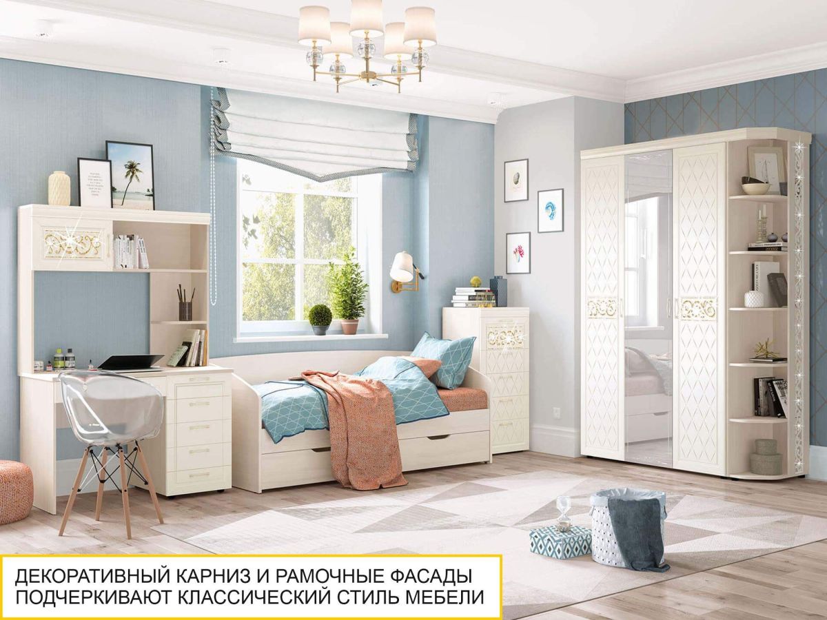Спальный гарнитур «Тиффани 93 102» является частью модульной программы «Тиффани». Коллекция «Тиффани» - символ классического стиля и незабываемого шарма. Нежные светлые фасады и изысканность декора - отличительная черта коллекции. Ажурные декоративные элементы и кристаллы придают уникальность коллекции.