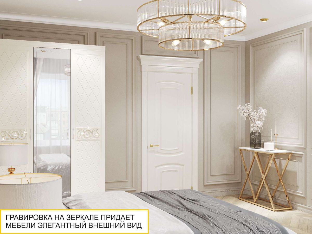 - Гравировка на зеркале придает мебели элегантный внешний вид.