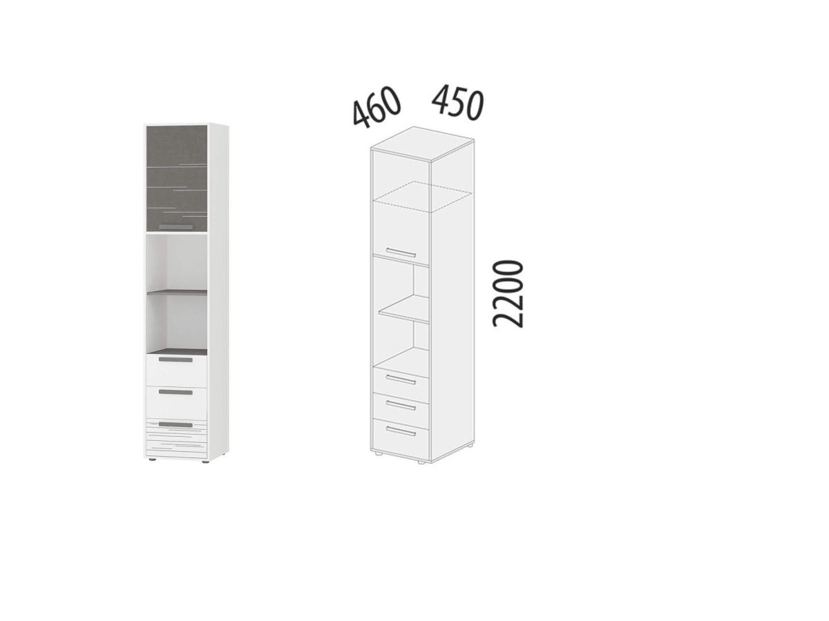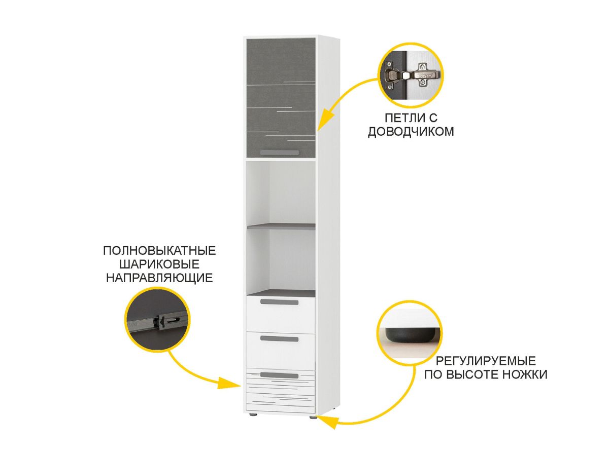Модуль состоит из открытых и закрытых полок и является удачным решением для организации хранения книг, документов и других полезных мелочей. Стеллаж можно использовать не только в сочетании с другими модулями, но и как отдельный предмет мебели.