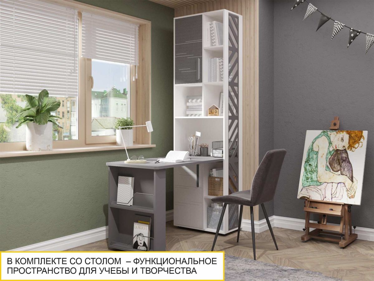 - В комплекте со столом модуль превращается в функциональное место для учебы, работы или творчества.