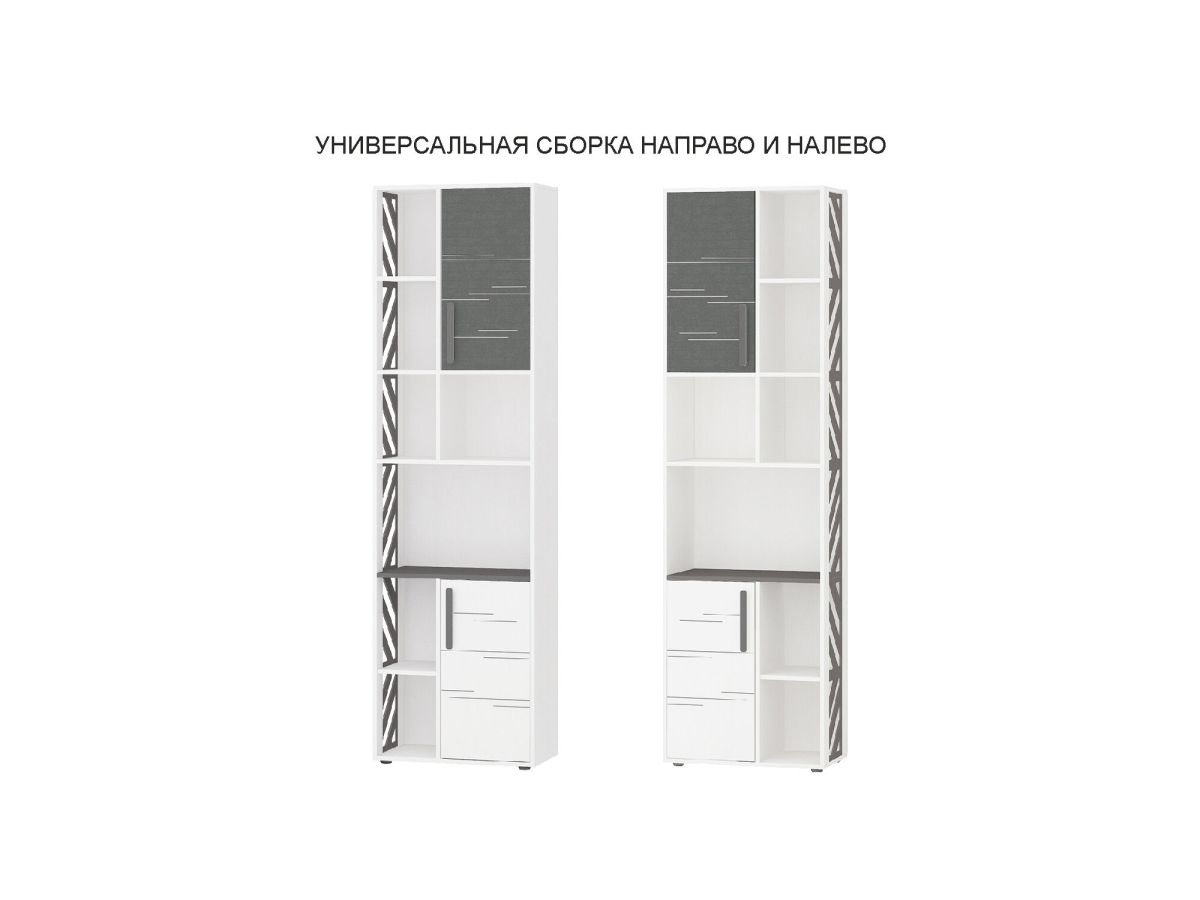 Модуль состоит из открытых и закрытых полок и является удачным решением для организации хранения книг, документов и других полезных мелочей. Стеллаж можно использовать не только в сочетании с другими модулями, но и как отдельный предмет мебели.