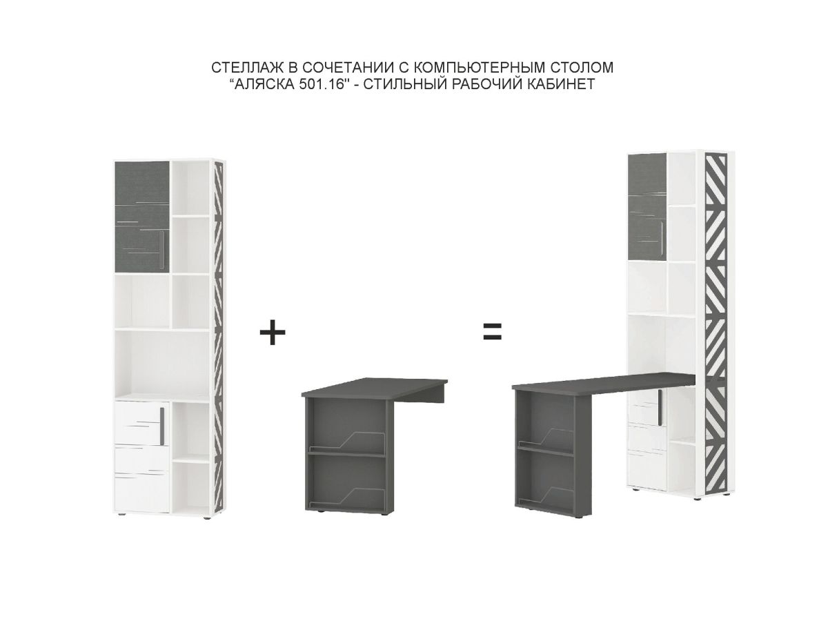 Стеллаж «Аляска 501.33» является частью модульной программы «Аляска». Эта коллекция представляет собой новый уровень комфорта и стиля. Изысканный минимализм с акцентом на функциональность делает эту детскую идеальным выбором для мечтательных и независимых подростков.