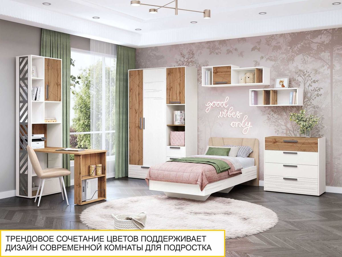 Стеллаж «Аляска 503.04» является частью модульной программы «Аляска 503». Коллекция подростковой «Аляска 503» - это современное и функциональное пространство для жизни и учебы. Сочетание белоснежных фасадов с теплым оттенком натурального дерева создает стильный образ коллекции, а универсальный дизайн отлично подойдет как юношам и девушкам, так и детям дошкольного возраста.
