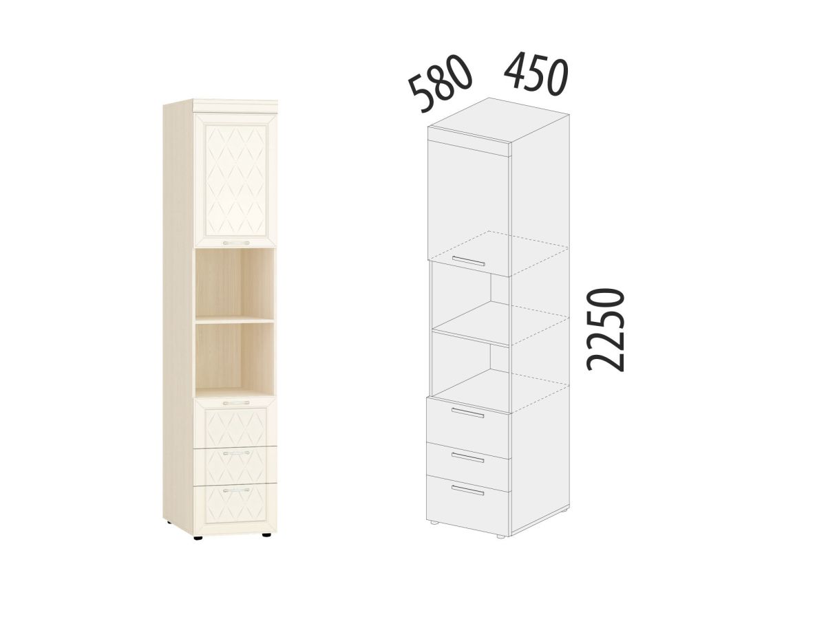 Стеллаж «Тиффани 93.56» является частью модульной программы «Тиффани». Коллекция «Тиффани» - символ классического стиля и незабываемого шарма. Нежные светлые фасады и изысканность декора - отличительная черта коллекции. Ажурные декоративные элементы и кристаллы придают уникальность коллекции.