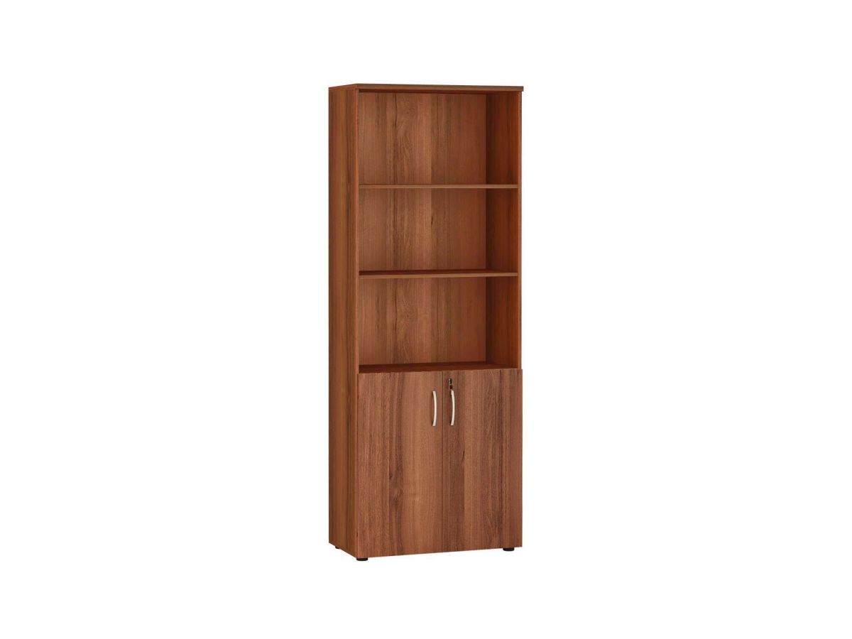 Стеллаж «Альфа 62 532» является частью модульного набора мебели «Альфа». Модуль разделен полками на пять секций. Стеллаж укомплектован дверцами. Устойчивость конструкции придают межсекционные стяжки. Регулируемые по высоте ножки компенсируют возможные неровности пола.