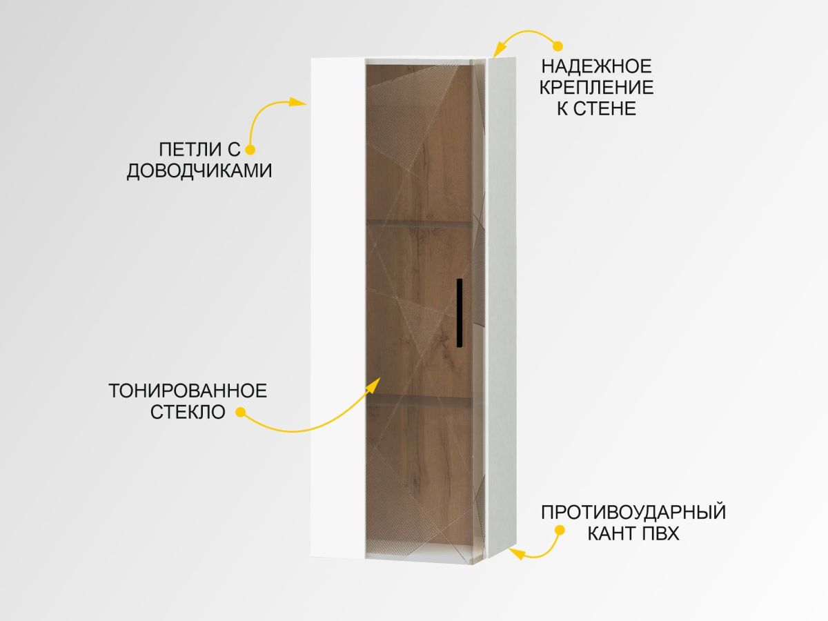- Современная и качественная фурнитура добавляет удобства и комфорта в использовании. Дверца витрины оснащена петлями с доводчиками. Выдвижные ящики тумбы оборудованы системой плавного закрывания скрытого монтажа.