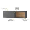 - Современная и качественная фурнитура добавляет удобства и комфорта в использовании. Дверцы модулей оснащены петлями с доводчиками. Выдвижные ящики тумбы оборудованы системой плавного закрывания скрытого монтажа. В закрытых полках установлена система Push-To-Open.