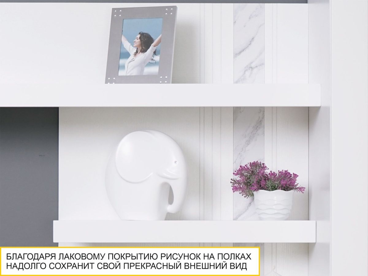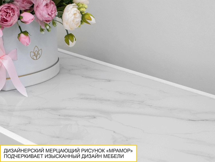 • Полки декорированы стильным мерцающим рисунком под «мрамор», который добавляет оригинальности в интерьер.