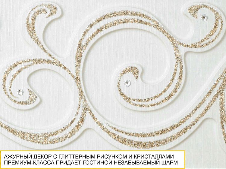 - Ажурный декоративный элемент, дополненный глиттерным рисунком и кристаллами премиум-класса, придает гостиной незабываемый шарм.
