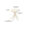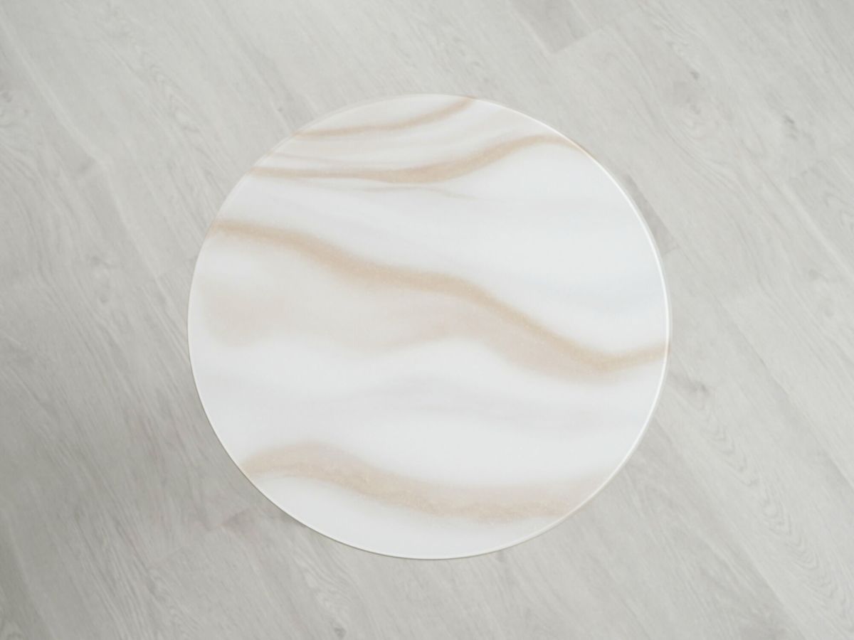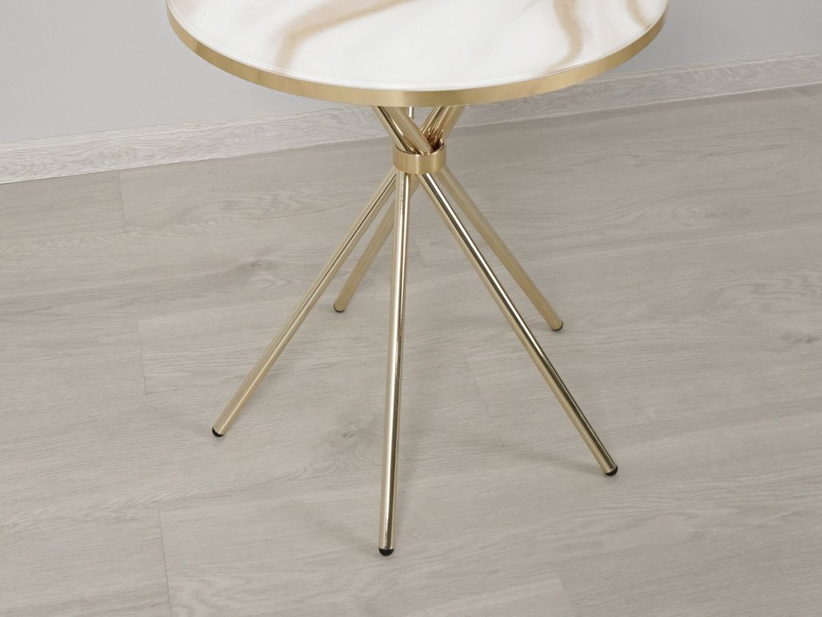 Столик выполнен в современном стиле, который удачно сочетает в себе элегантность и практичность. Круглая форма столешницы делает мебель удобной и комфортной в использовании. Комбинация «белого мрамора» и «глянцевого золота» выглядит стильно и эффектно. Идеальное решение для тех, кто хочет добавить в интерьер элегантности.