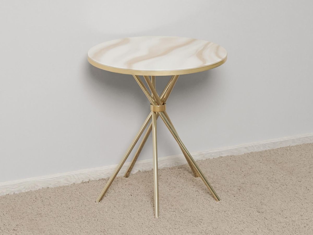 «Агат 41 Белый мрамор/Золото» – это стильный и компактный журнальный столик, который станет ярким акцентом в интерьере гостиной.