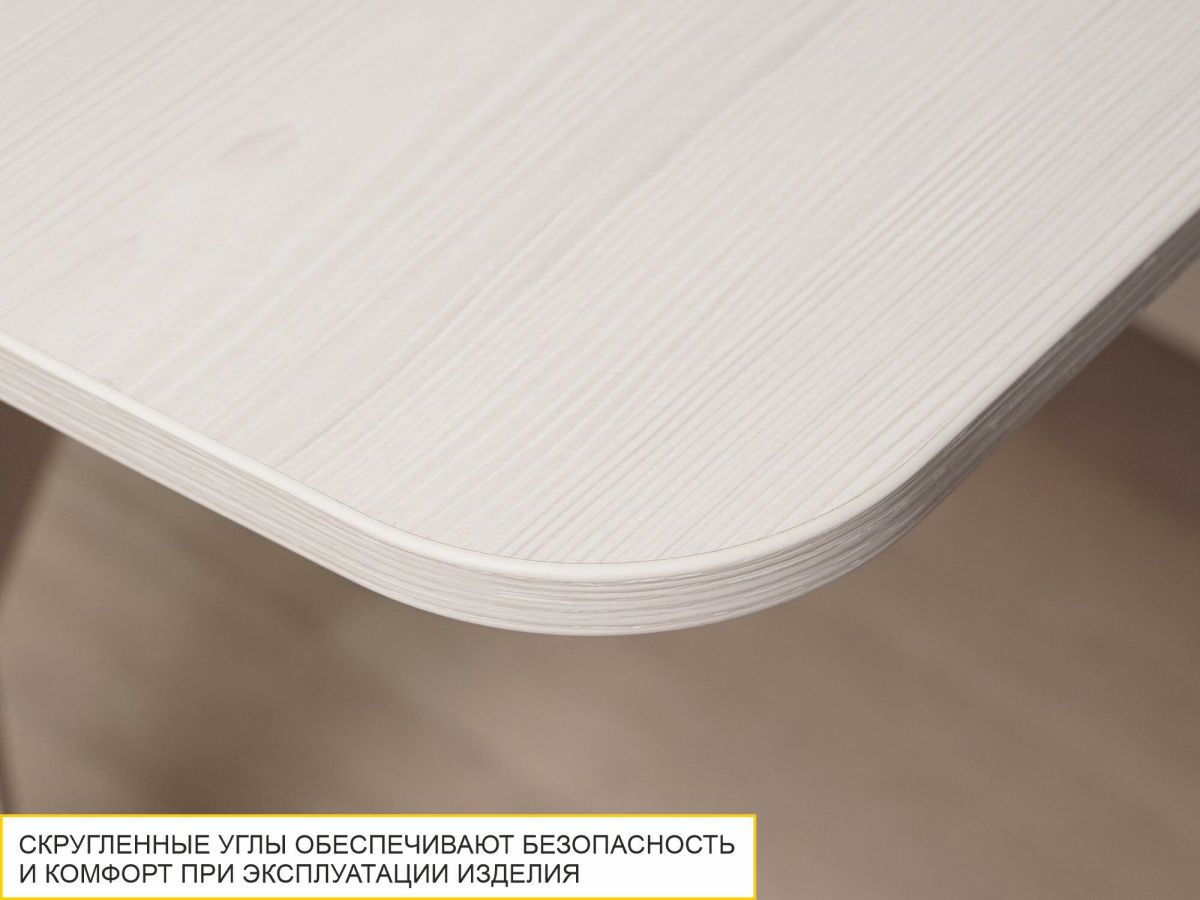 - Скругленные углы столешницы уберегут от травм и обеспечат дополнительный комфорт при эксплуатации изделия.