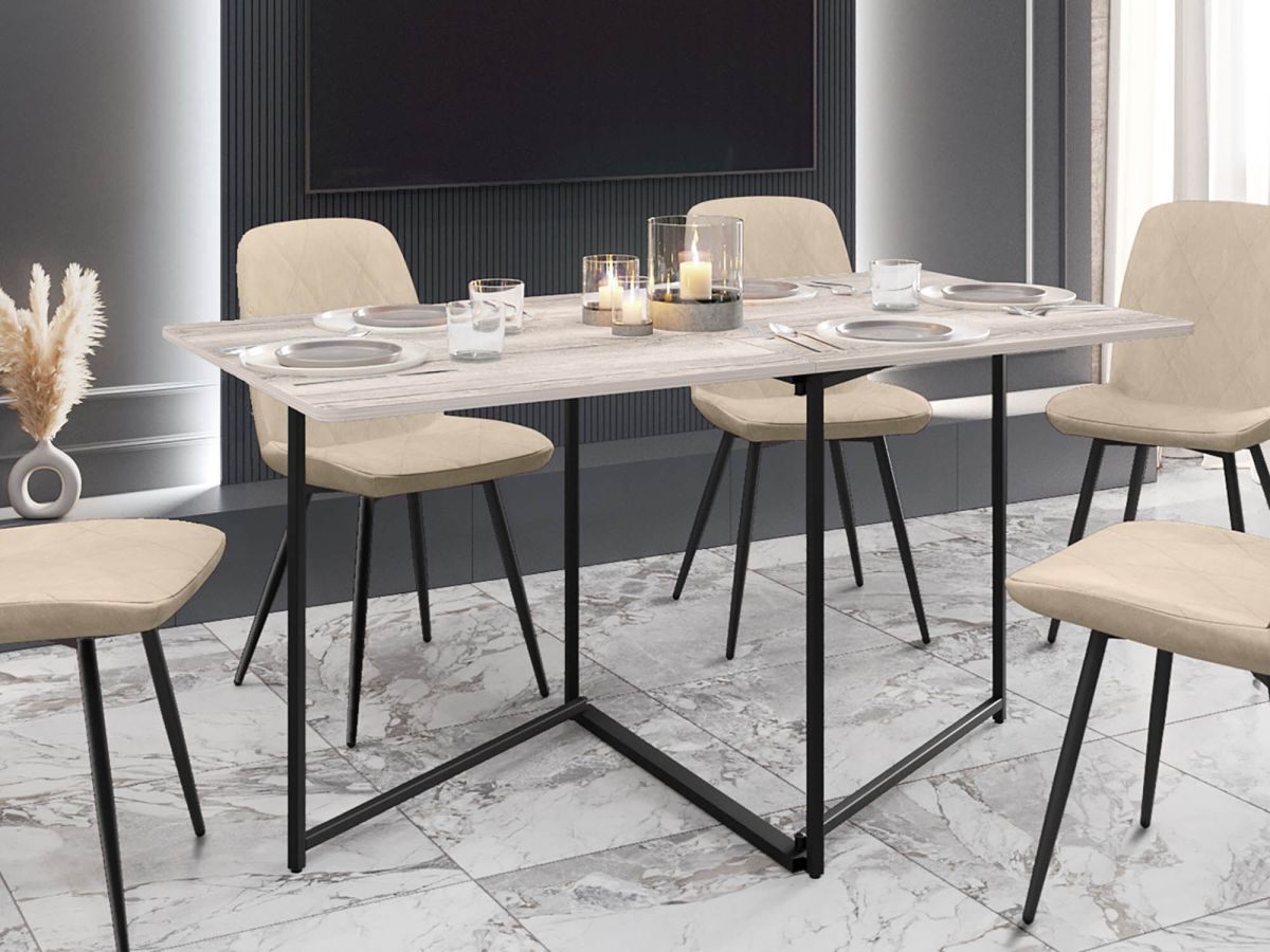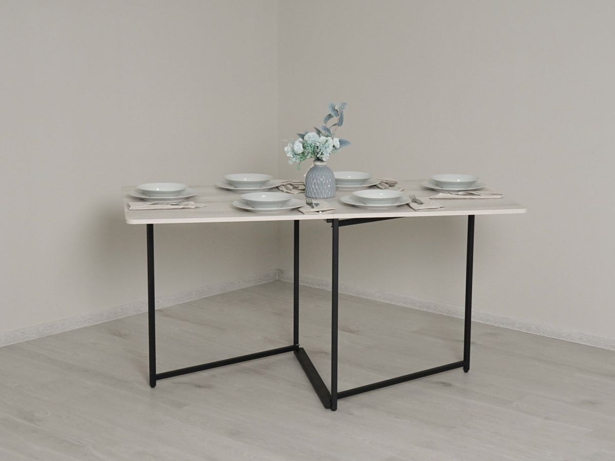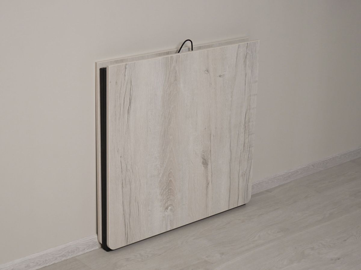 - В полностью сложенном виде стол занимает всего 8 сантиметров, что позволяет сохранить свободное пространство в доме. Вы можете хранить стол за дверью, шкафом, диваном и без труда достать его на любой праздник.