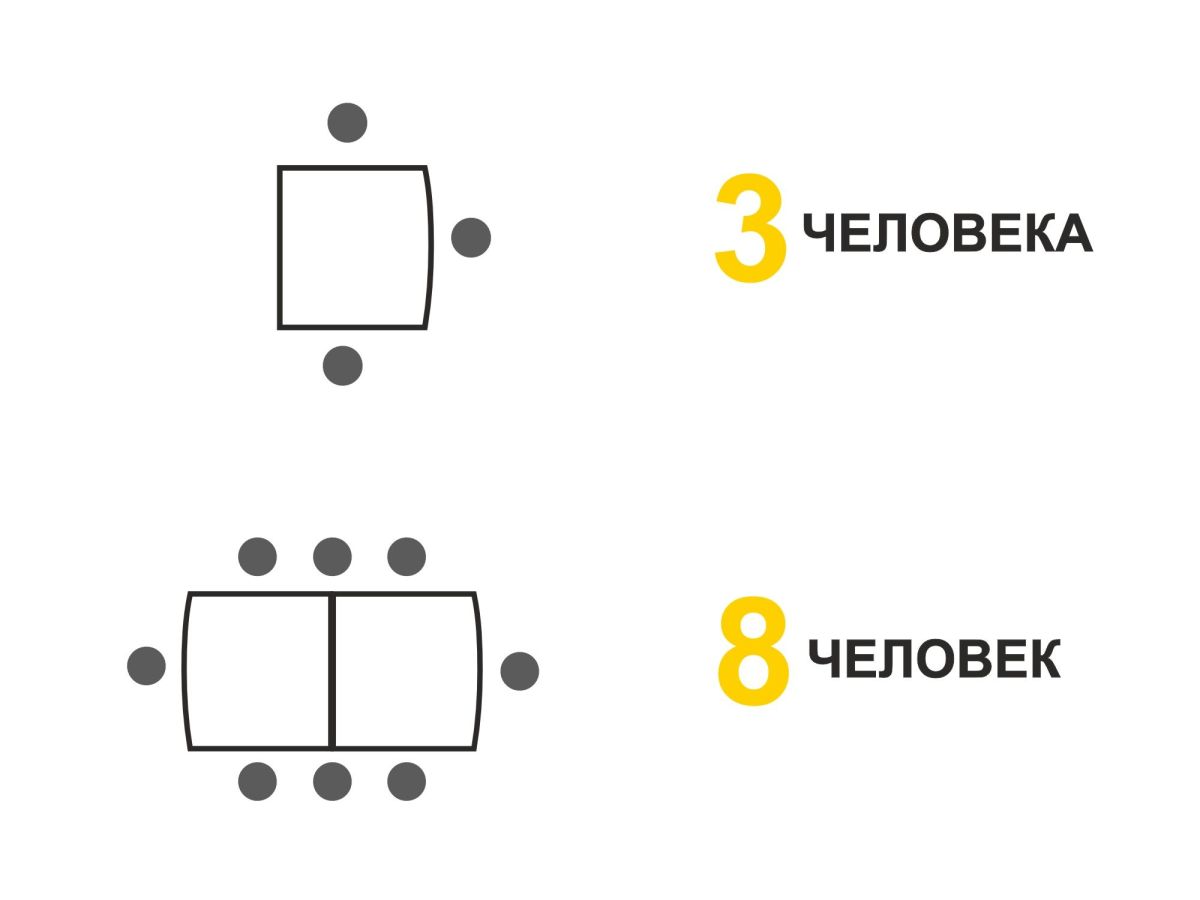 - Максимальное количество посадочных мест за столом – 8 персон.