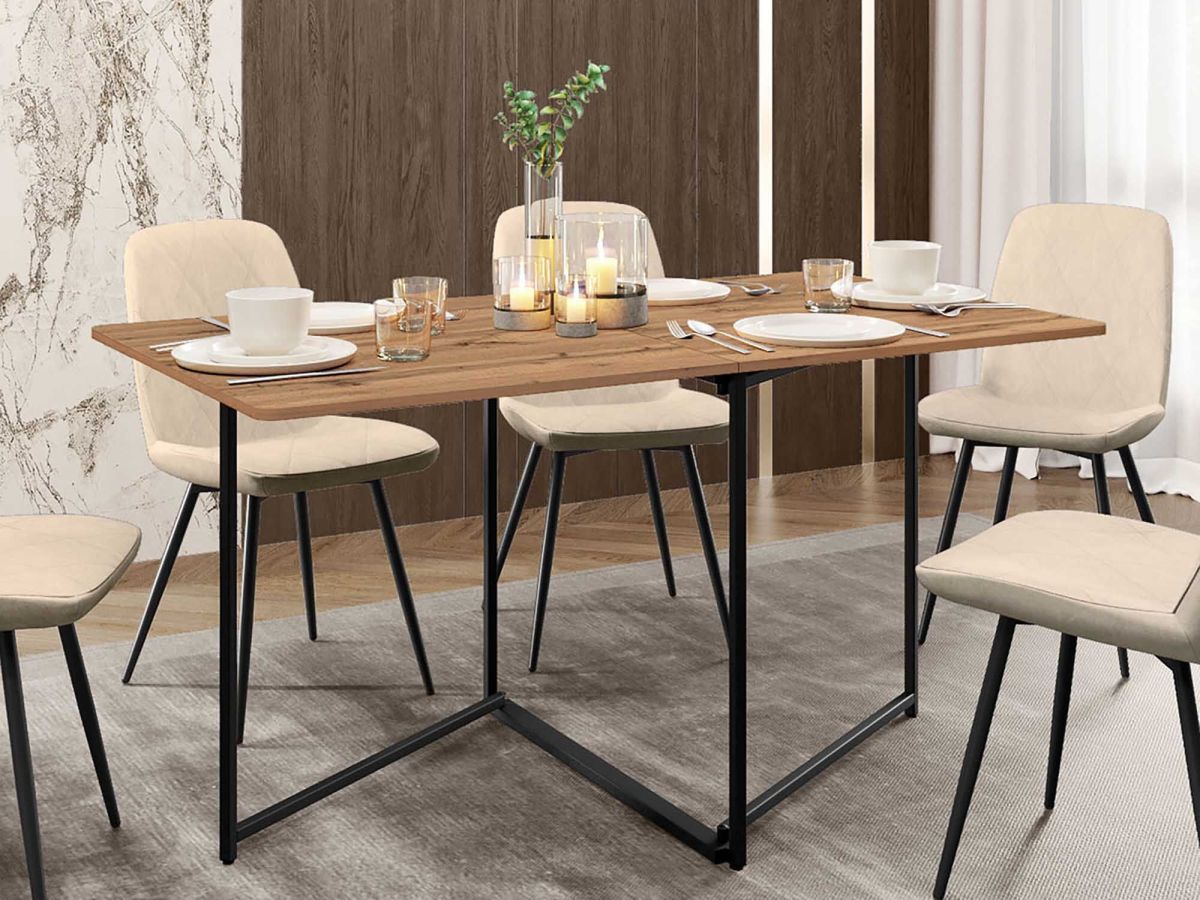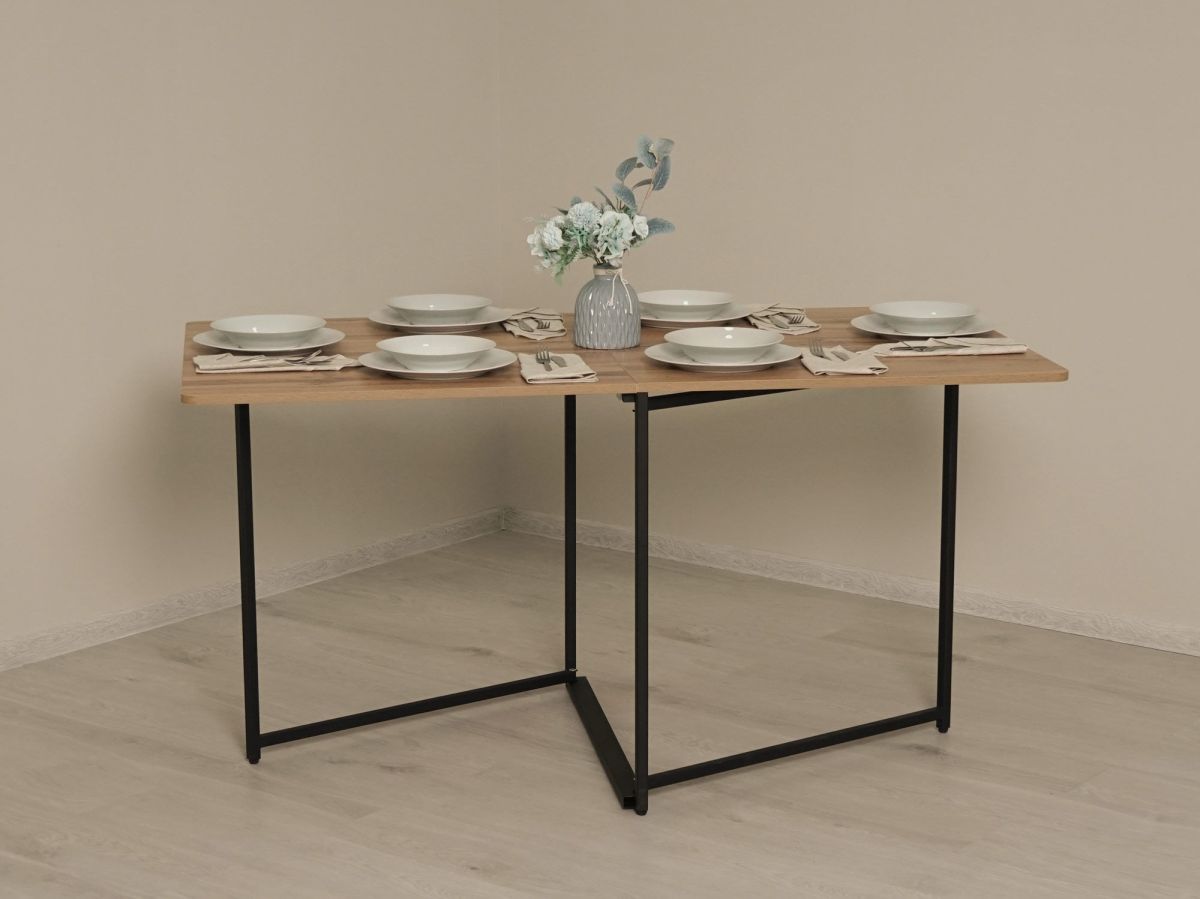 - В полностью сложенном виде стол занимает всего 8 сантиметров, что позволяет сохранить свободное пространство в доме. Вы можете хранить стол за дверью, шкафом, диваном и без труда достать его на любой праздник.